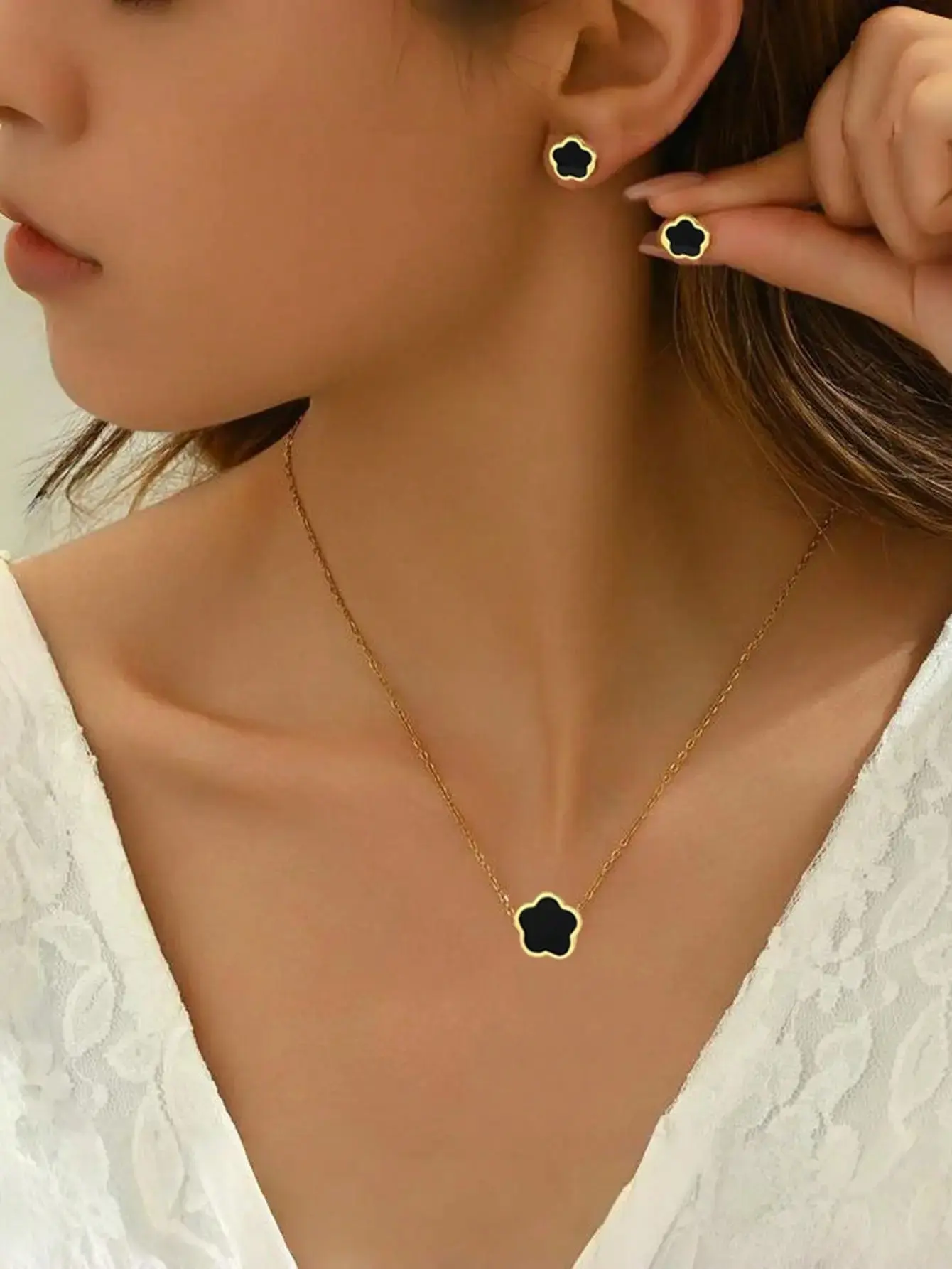 This delicate necklace features a black enamel flower charm outlined in 18K gold plating, giving it a sophisticated contrast and timeless appeal.Crafted with high-quality S925 sterling silver, it offers both durability and comfort for daily wear while maintaining a luxurious shine.