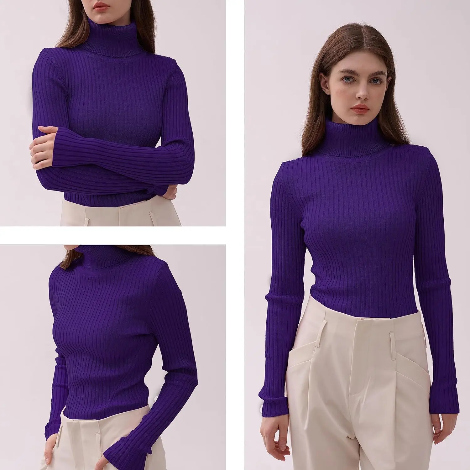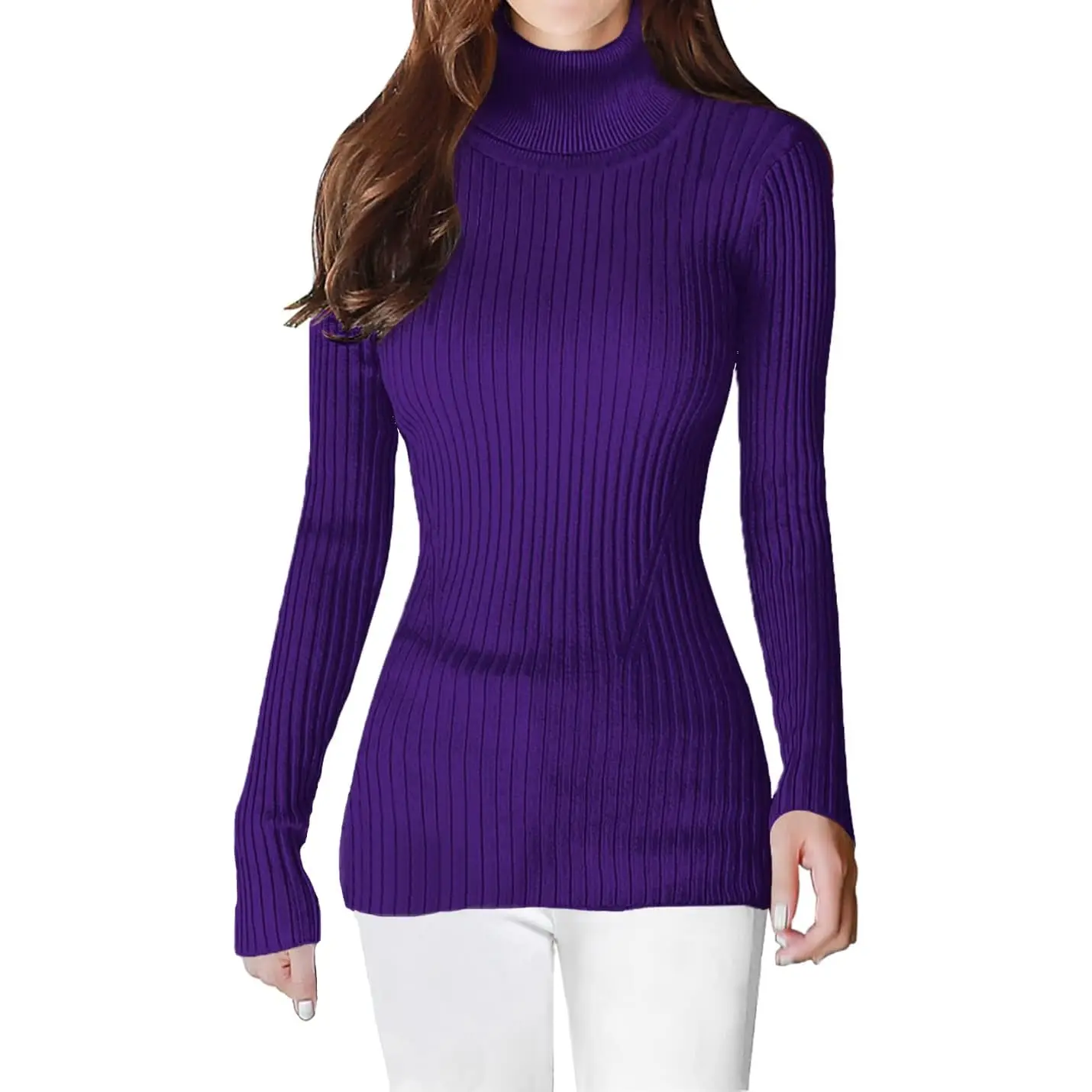 V28 Turtleneck Ribbed Sweaters for Women Cute Sexy Knitted Warm Fitted Sweater v28