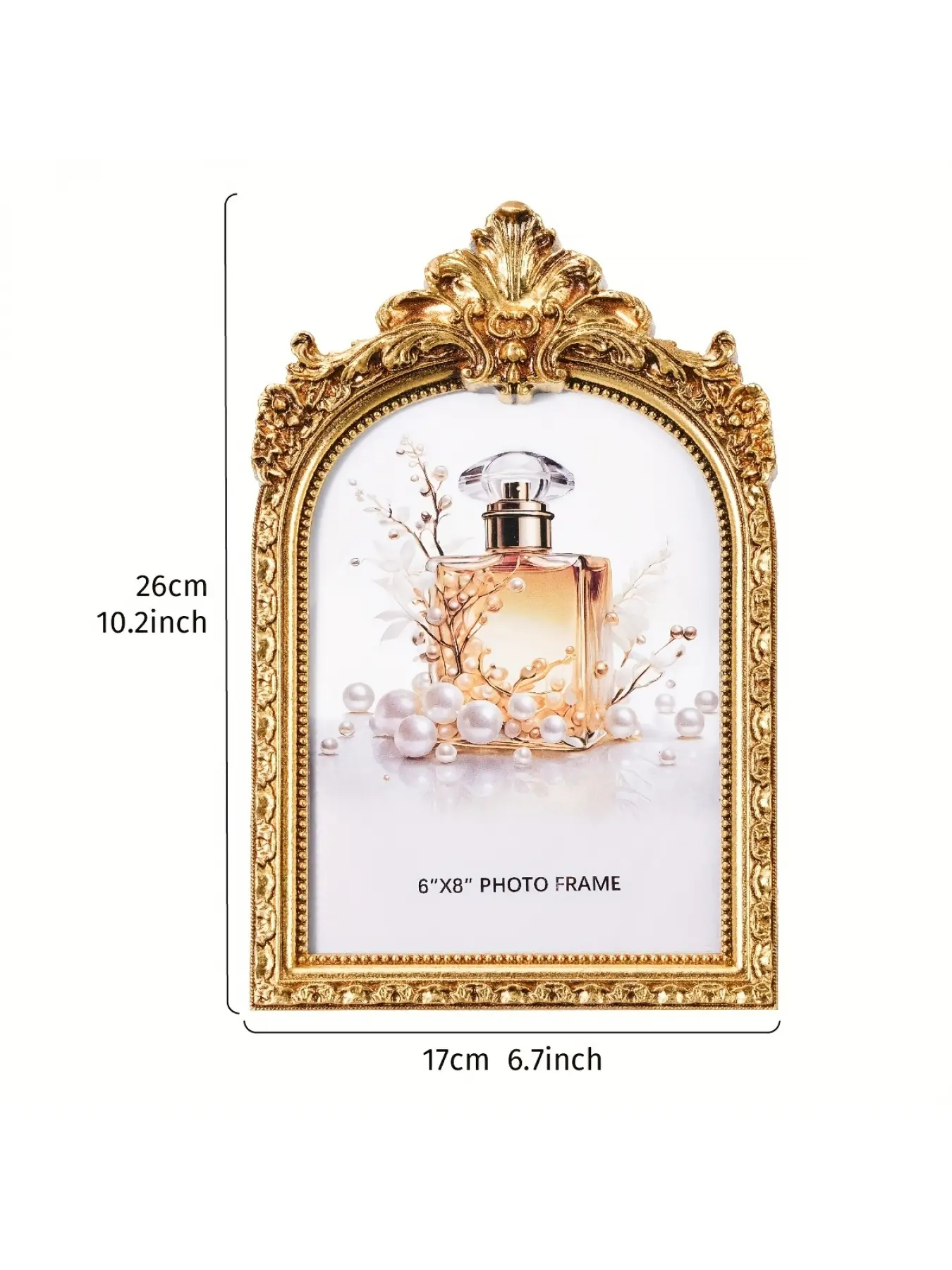 5. 1PC European Vintage Gold Lace Arch Decorative Photo Frame with Random Inner Paper for Wedding Photography Display Home Decoration
