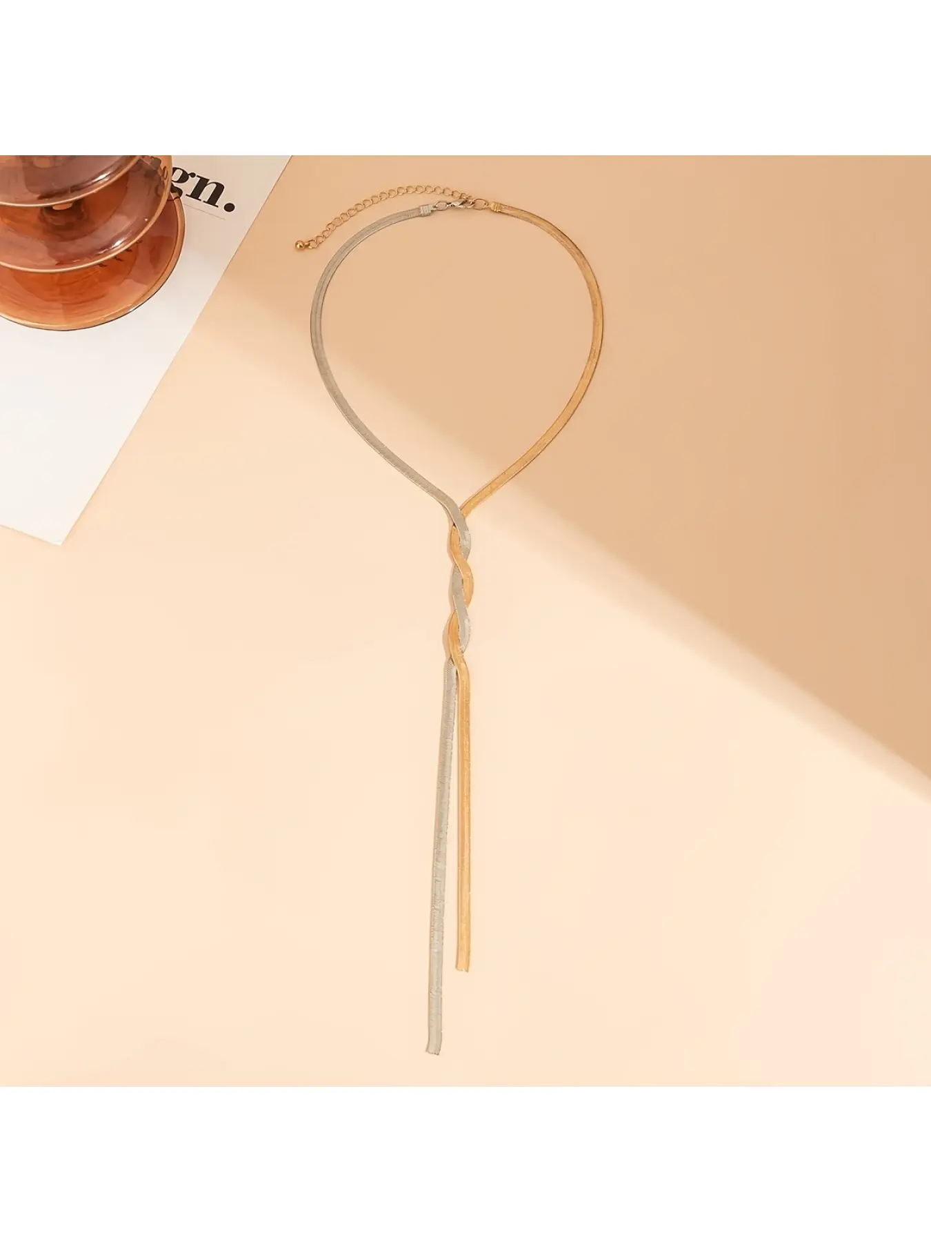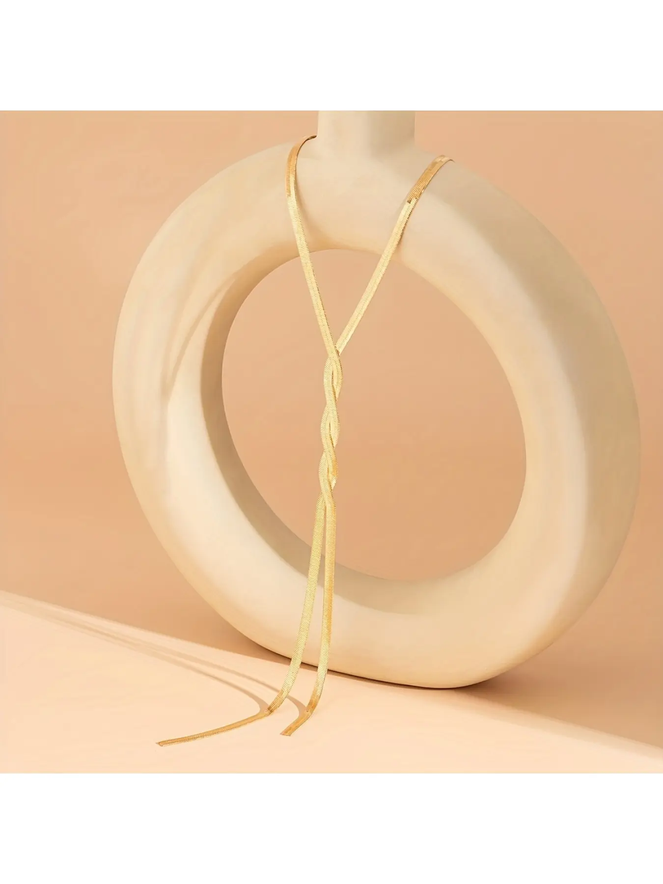1 Piece Simple Handmade Flat Snake Chain Long Tassel Necklace - Fashion Jewelry Gift for Mom, Wife, Girlfriend & Best Friend