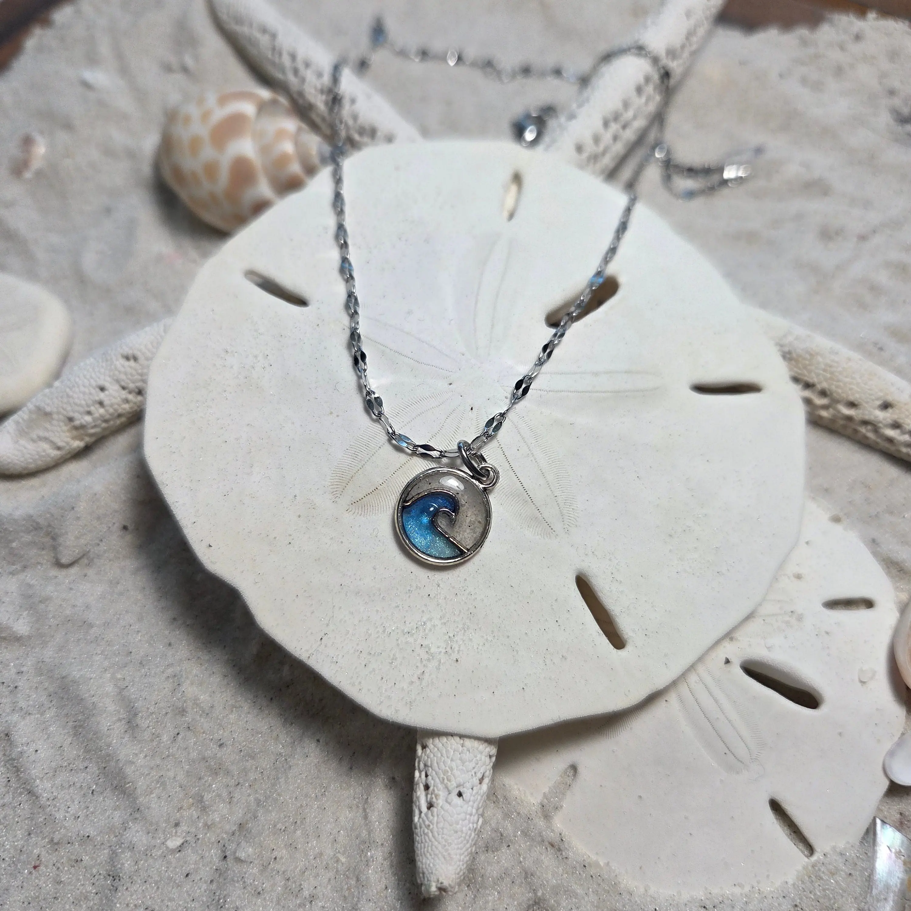 Each charming wave pendant is handcrafted with Florida beach sand, making every necklace a unique little masterpiece. The sand’s natural, beachy colors guarantee your necklace is as unique as a seashell on the shore.