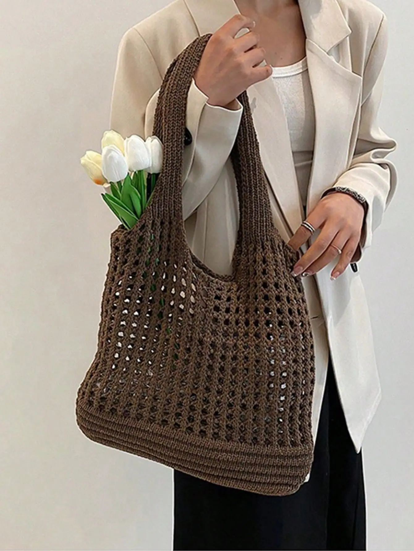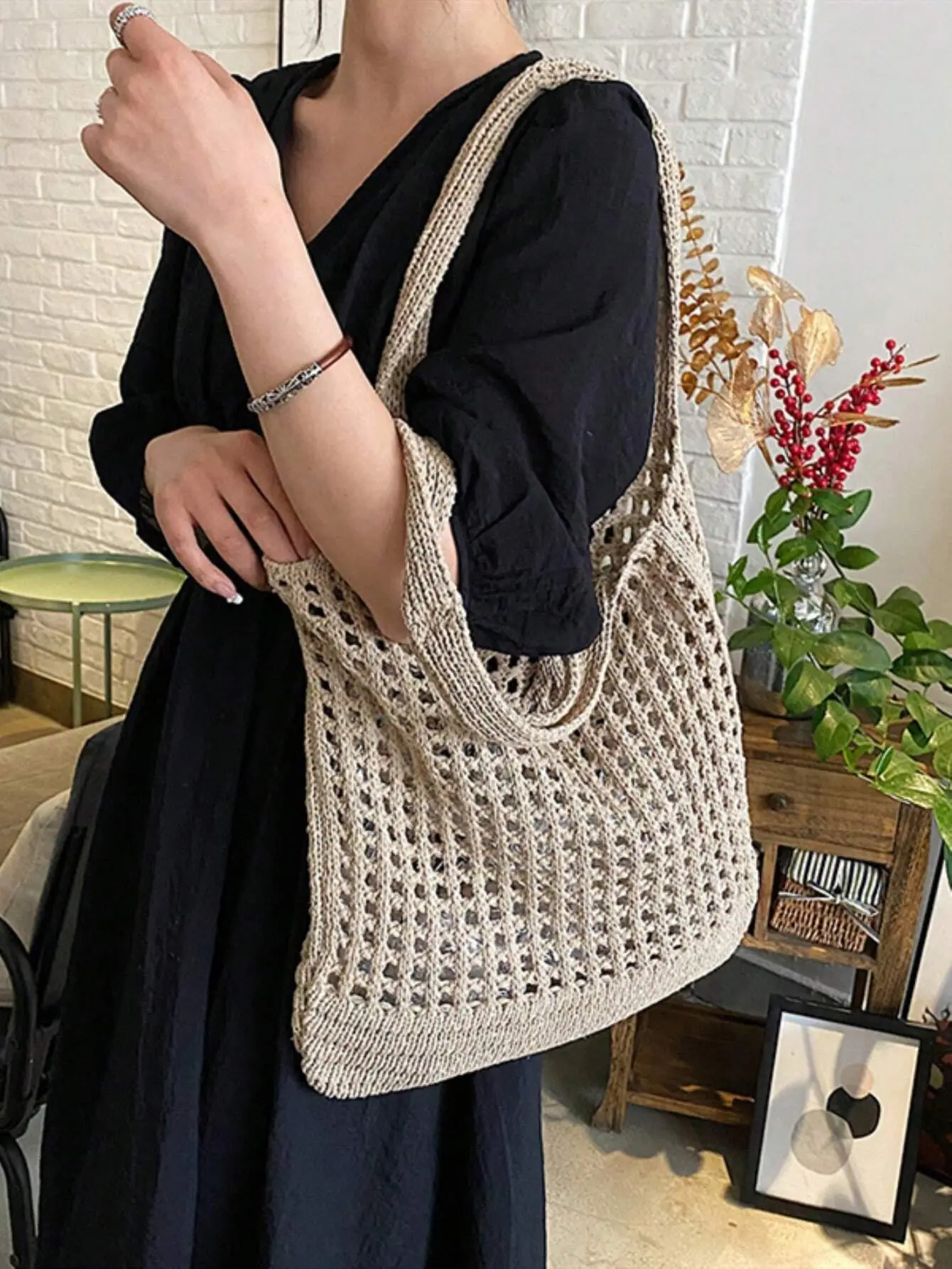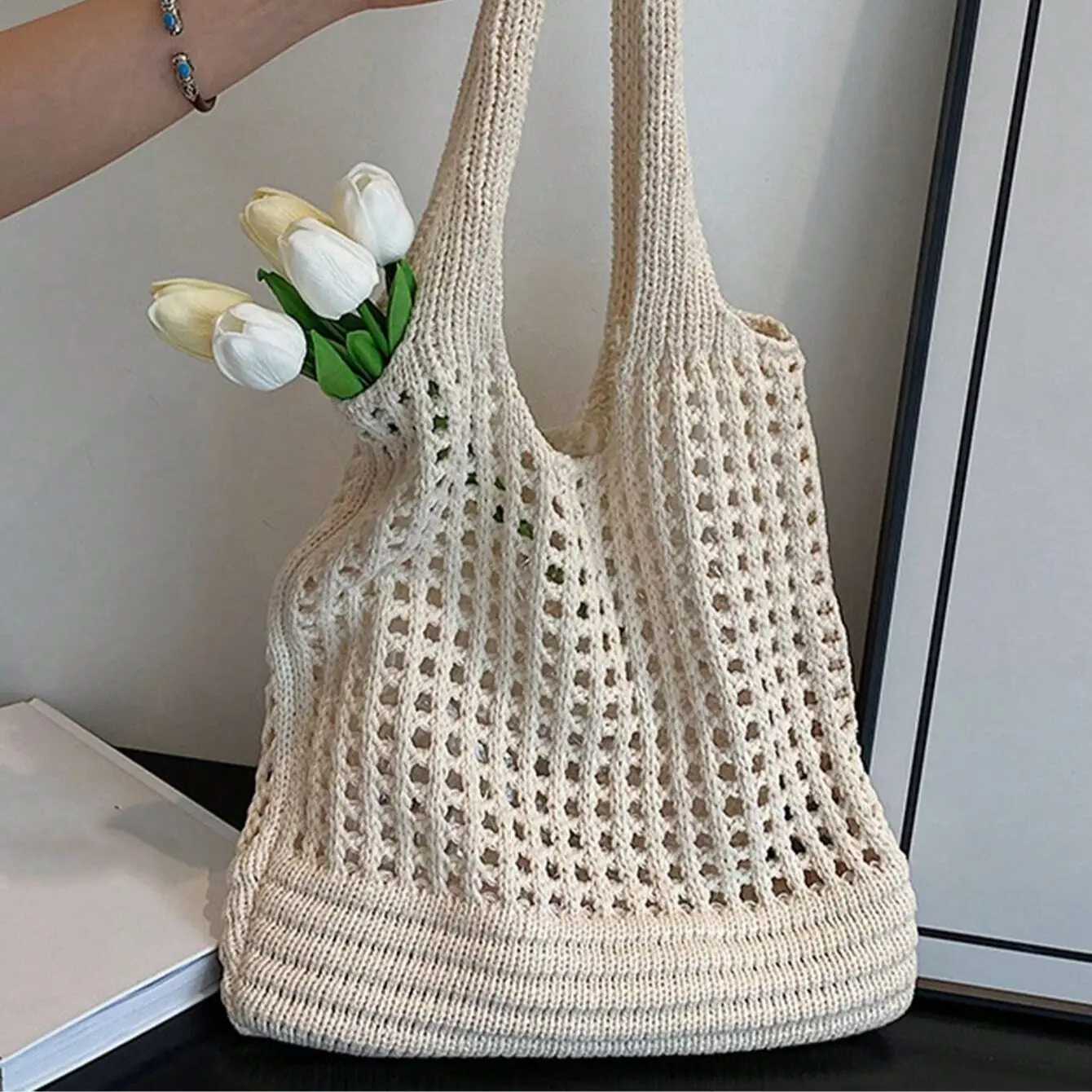 Crochet Woven Tote Bag – Large Capacity Summer Beach Shoulder Bag