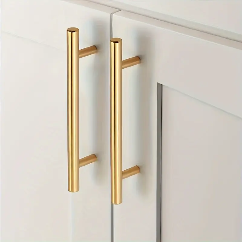 12pcs Gold Cabinet Handles, Wardrobe, Drawer, Kitchen Cabinet Handles, Stainless Steel Brushed Plated Handles, Powder Coated, Includes Installation Screws, Eas
