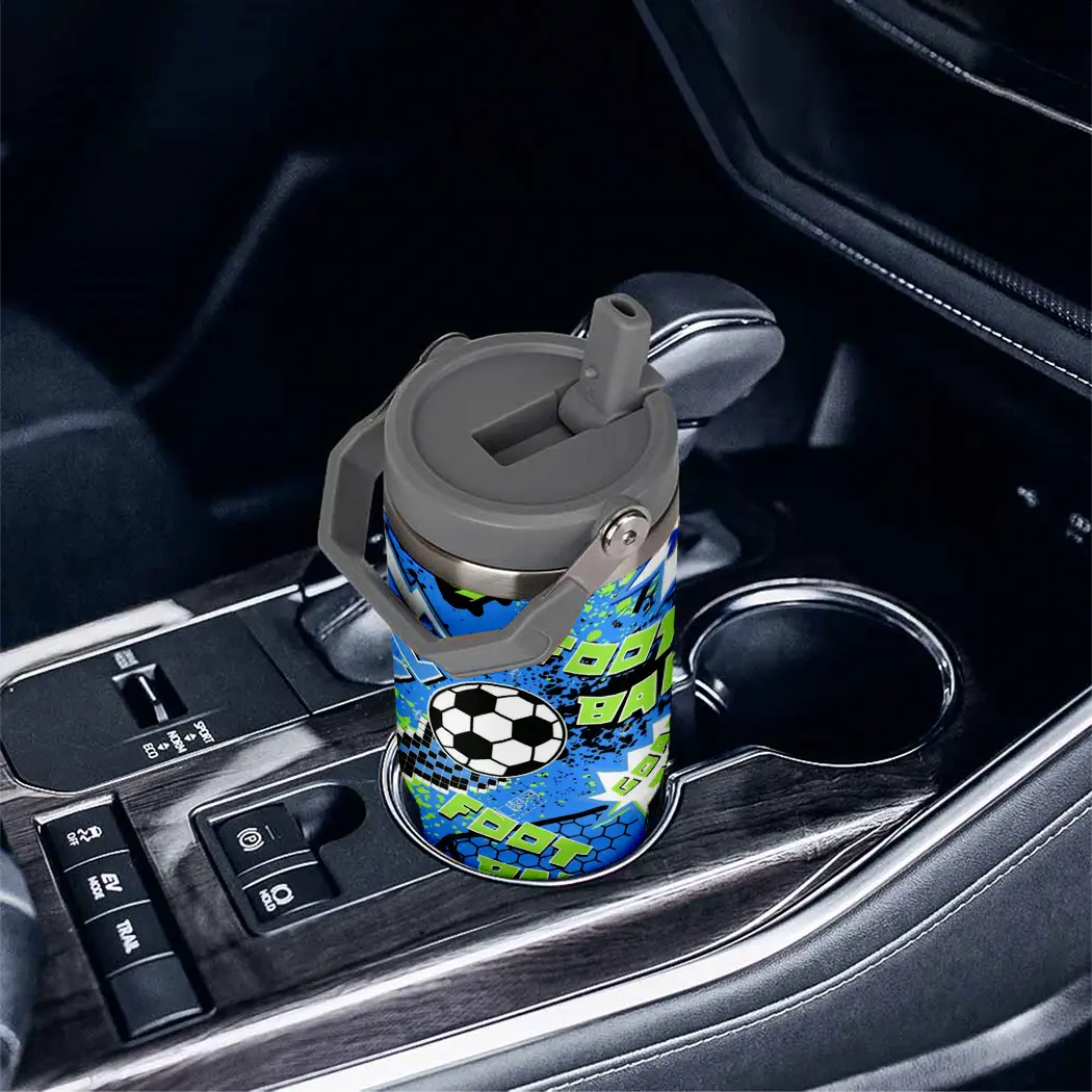 1 30Oz stainless steel football thermos cup with lid and straw, bright football design, large capacity, durable 304 stainless steel, the perfect gift for sports fans, suitable for home, travel, outdoor, summer and winter use