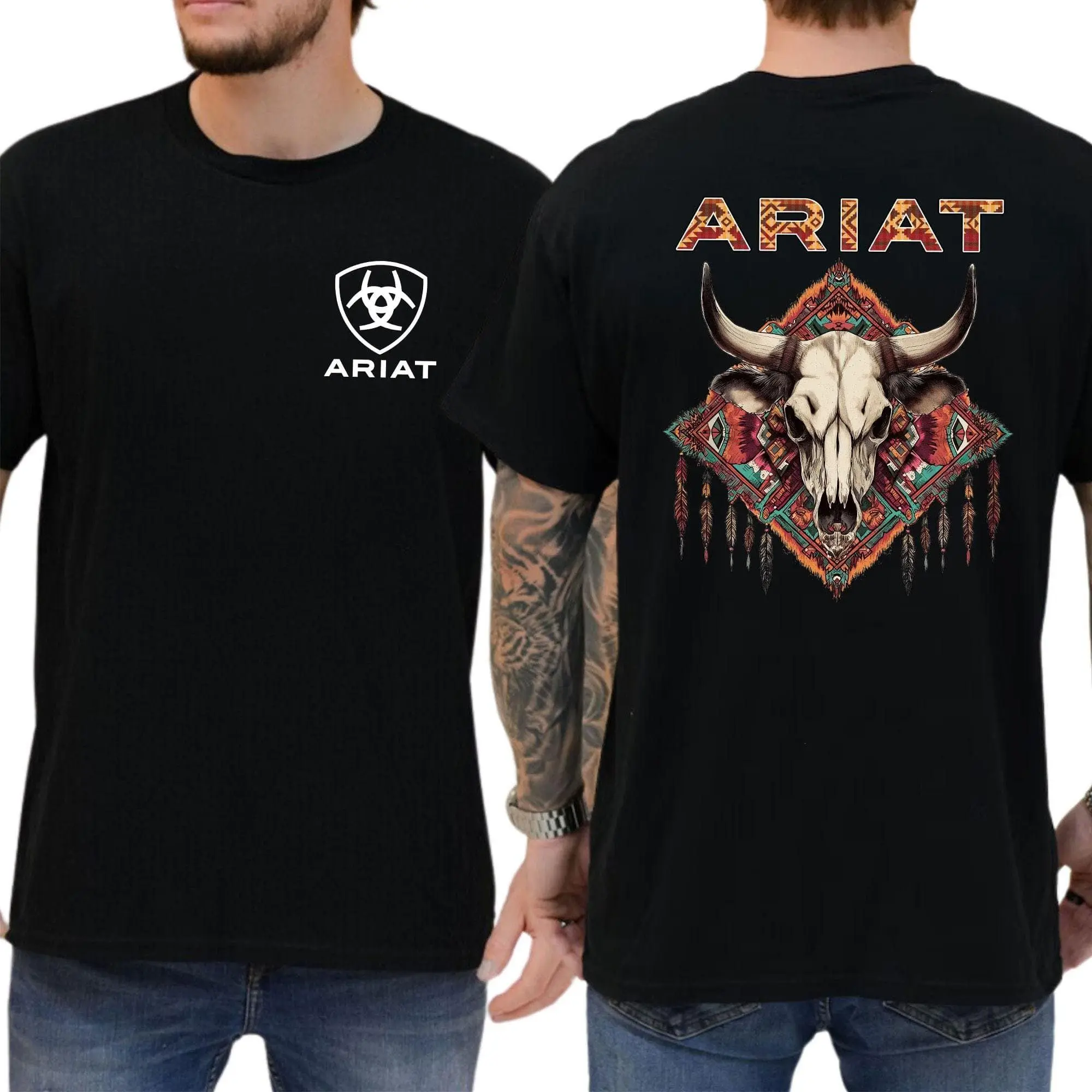 Ariat Shirt, Western Aztec Bull Skull Shirt, Rodeo T-shirt, Casual Menswear