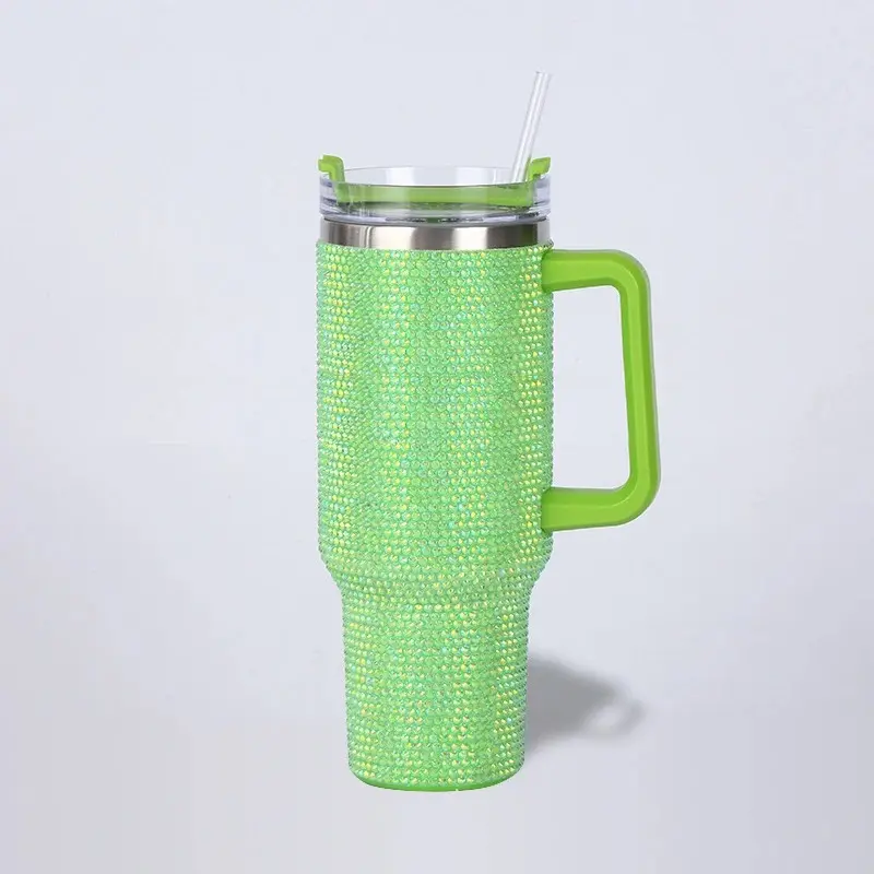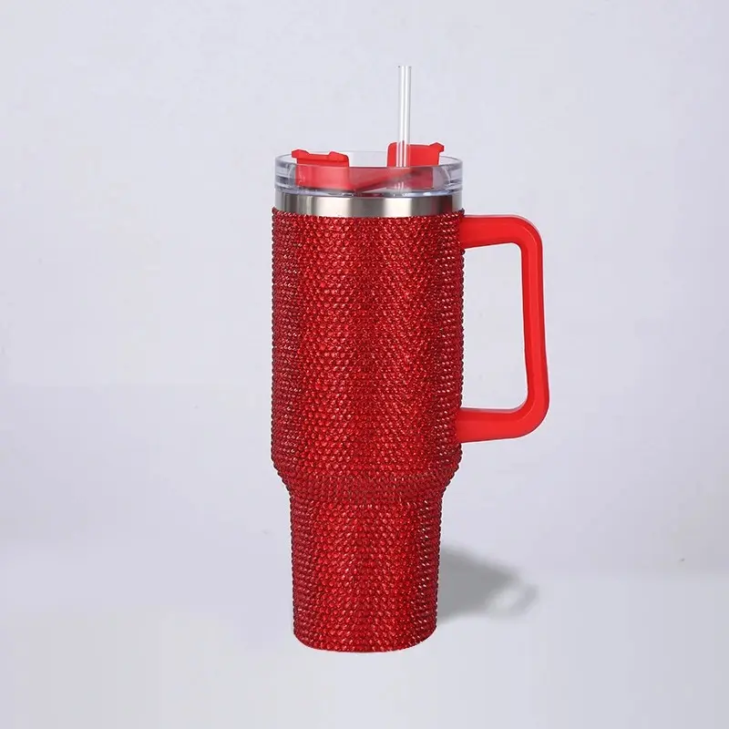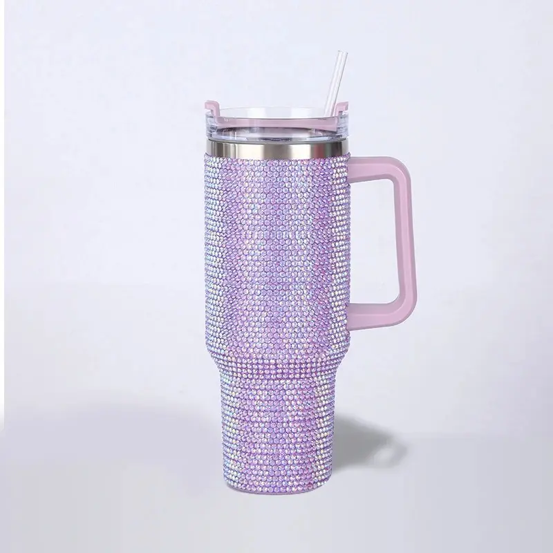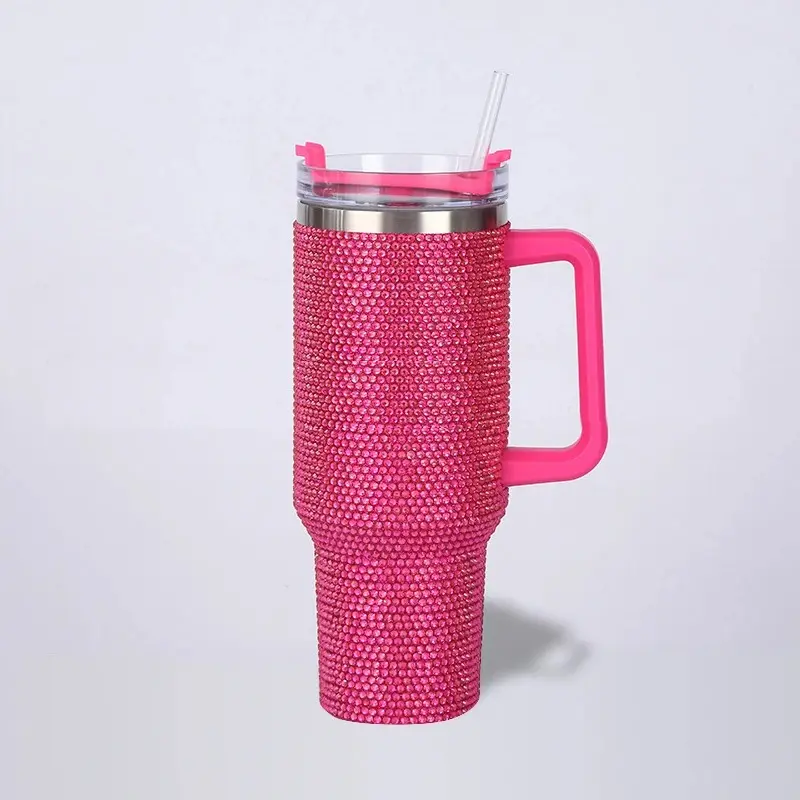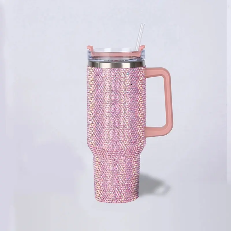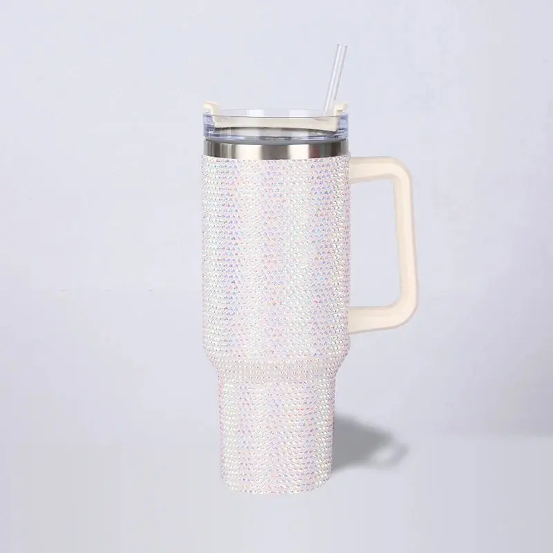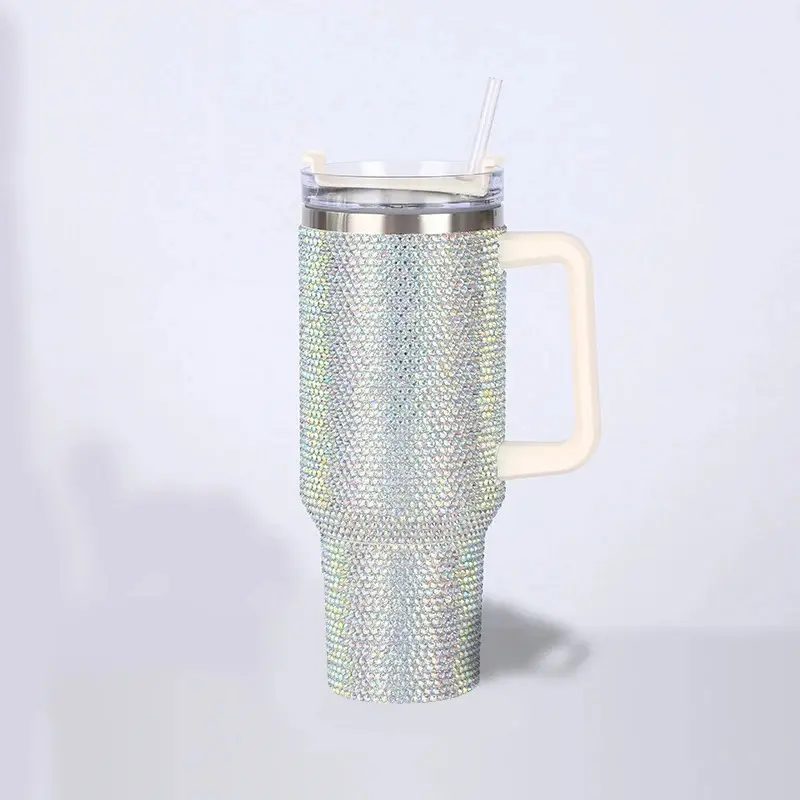 40oz Rhinestone Embellished Thermos Cup with Handle Tumbler Cup Insulated Bottle Car Vacuum Flasks Keep Cold And Ice