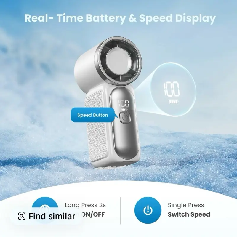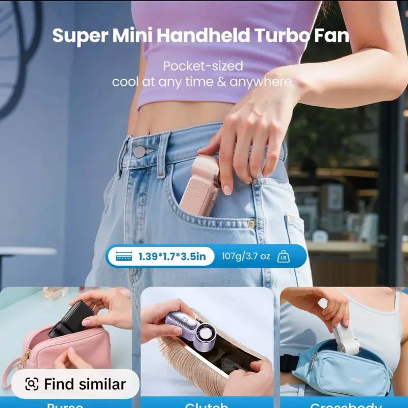 This portable mini turbo fan is perfect for on-the-go use. Its handheld design makes it easy to carry anywhere. Ideal for cooling down in hot weather or during travel. The rechargeable feature ensures you never run out of power. Stay cool and comfortable with this versatile fan.