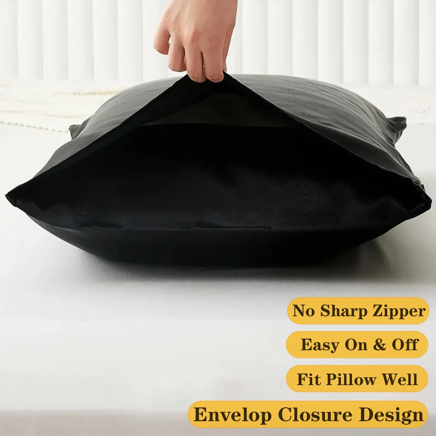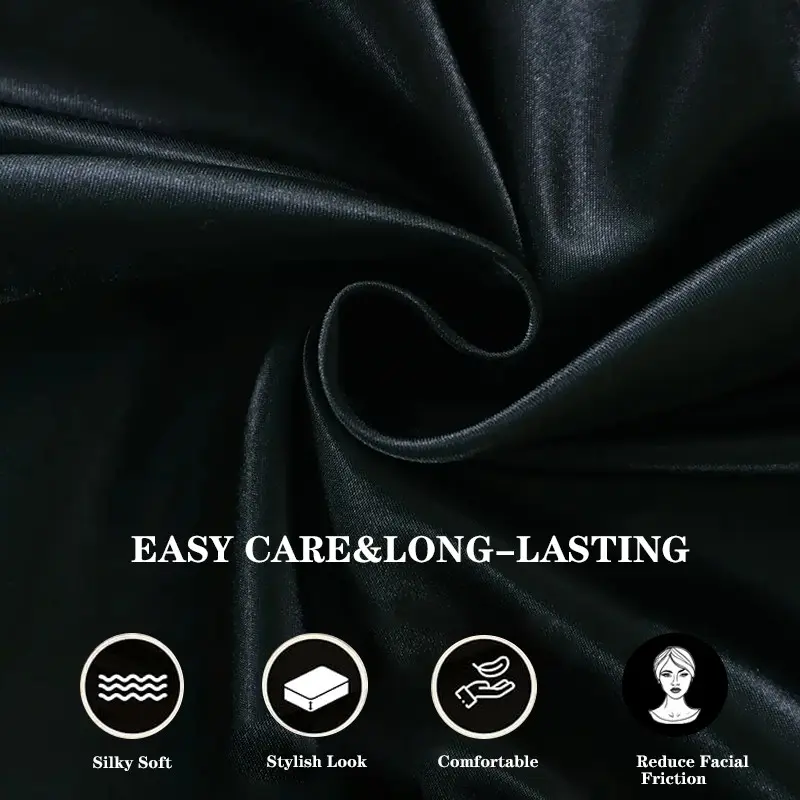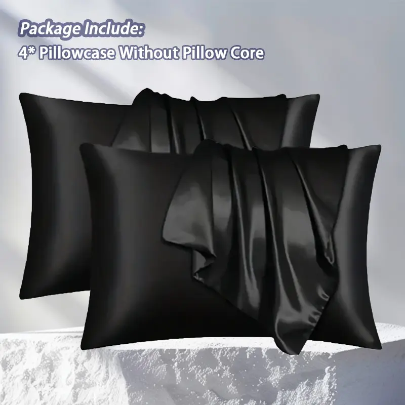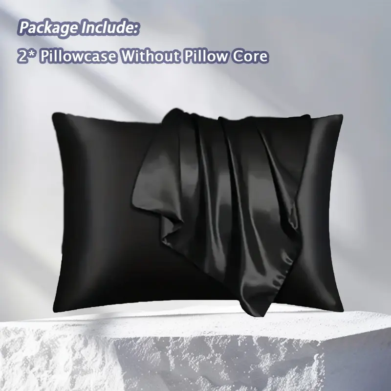 2-Piece Set of Solid Black Satin Pillowcases, Skin-Friendly and Breathable Pillowcases (Unfilled), Soft and Comfortable Home, Bedroom, and Dorm Bedding Accessories, Cool and Smooth to the Touch, Keep Your Bedroom Cool, Bedroom Decor, Silky Satin Bedding
