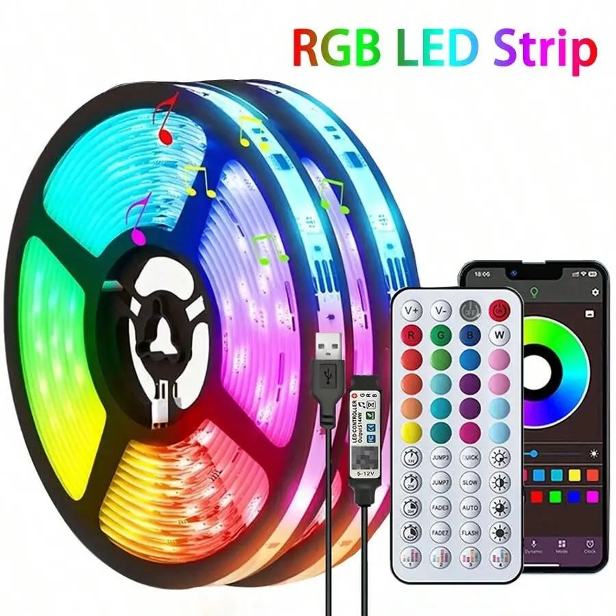 Smart Bluetooth-compatible LED Strip Light, USB 5v Low Voltage Safe Power, APP Control, Remote Dual Control, Color Changing, Music Rhythm, Timer Mode
