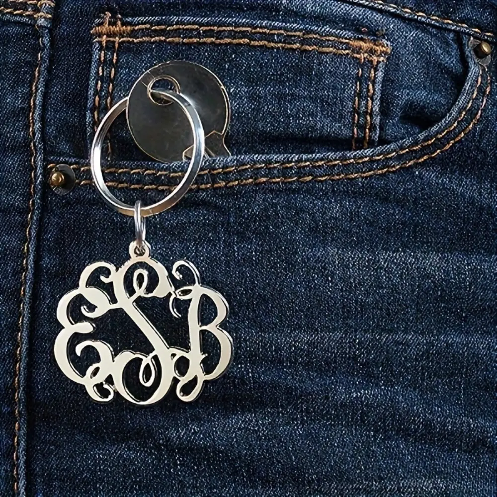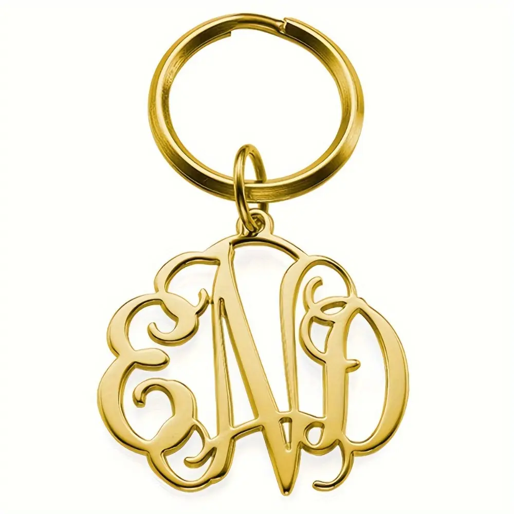 A Custom Letter Keychain Without a Chain - Elegantly Intertwined Letter Design, Unisex Heavy-Duty Key Ring - Perfect for Weddings, Anniversaries, And Birthday Gifts - Goldene Name Tag Pendant, Made of Stainless Steel, a Wedding Keepsake
