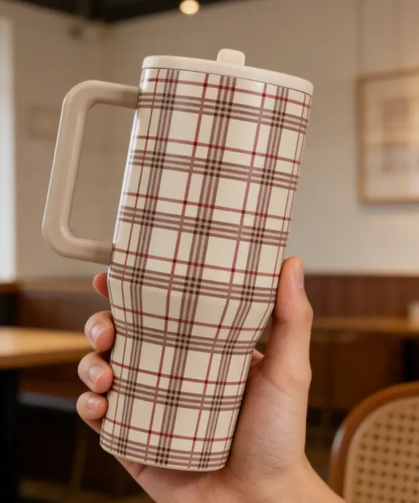 This tumbler is not just a cup; it's a flask, mug, or water bottle. Its plaid design adds a touch of personality. Ideal for daily use, it's a must-have for anyone looking for a reliable, leak-proof drinkware solution.