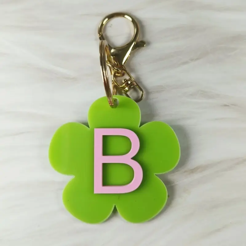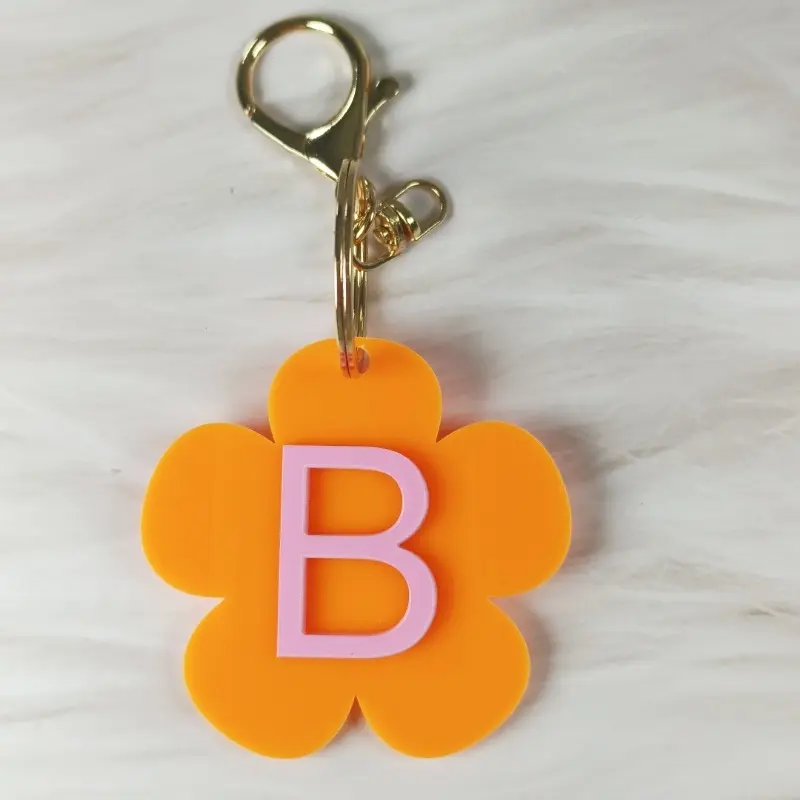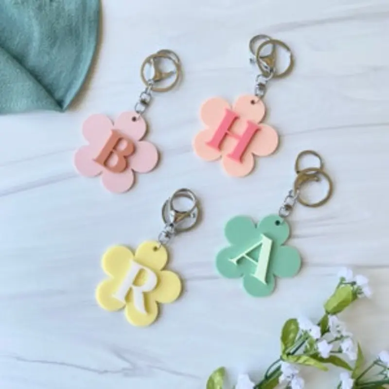 Personalized Name Flower Keychain, Initial Acrylic Keyring, Custom Acrylic Bag Tag, Backpack Name Label, Monogram Vintage Daisy Tag