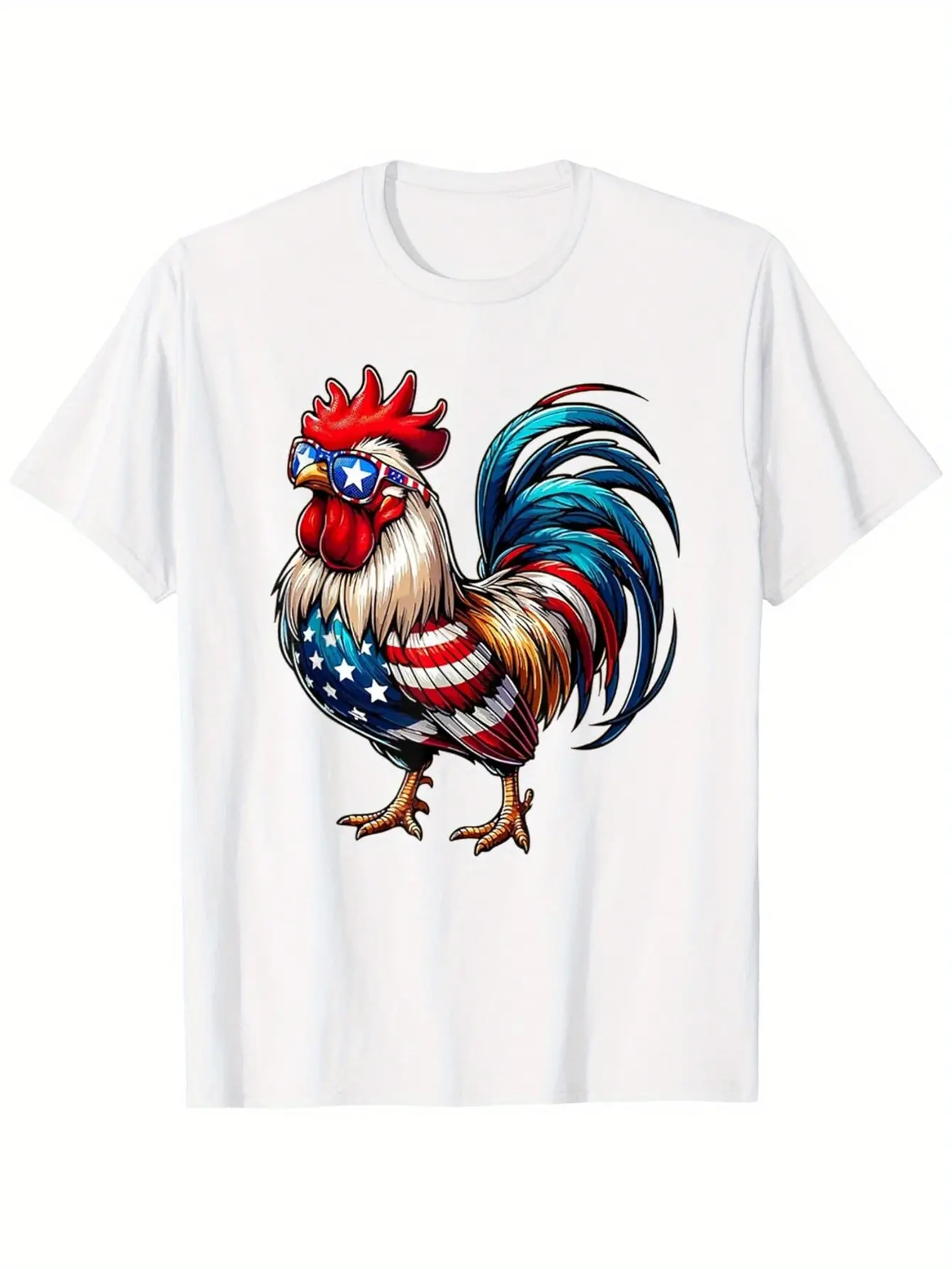 Funny Chicken Patriotic 4th of July T-Shirt for Men - US Flag Fashion Glasses Rooster Graphic, Super Soft Breathable Cotton Tee, Moisture-Wicking Casual Round Neck Shirt, Independence Day Gift for Him, Chicken Themed Gifts, Moisturewicking Fabric