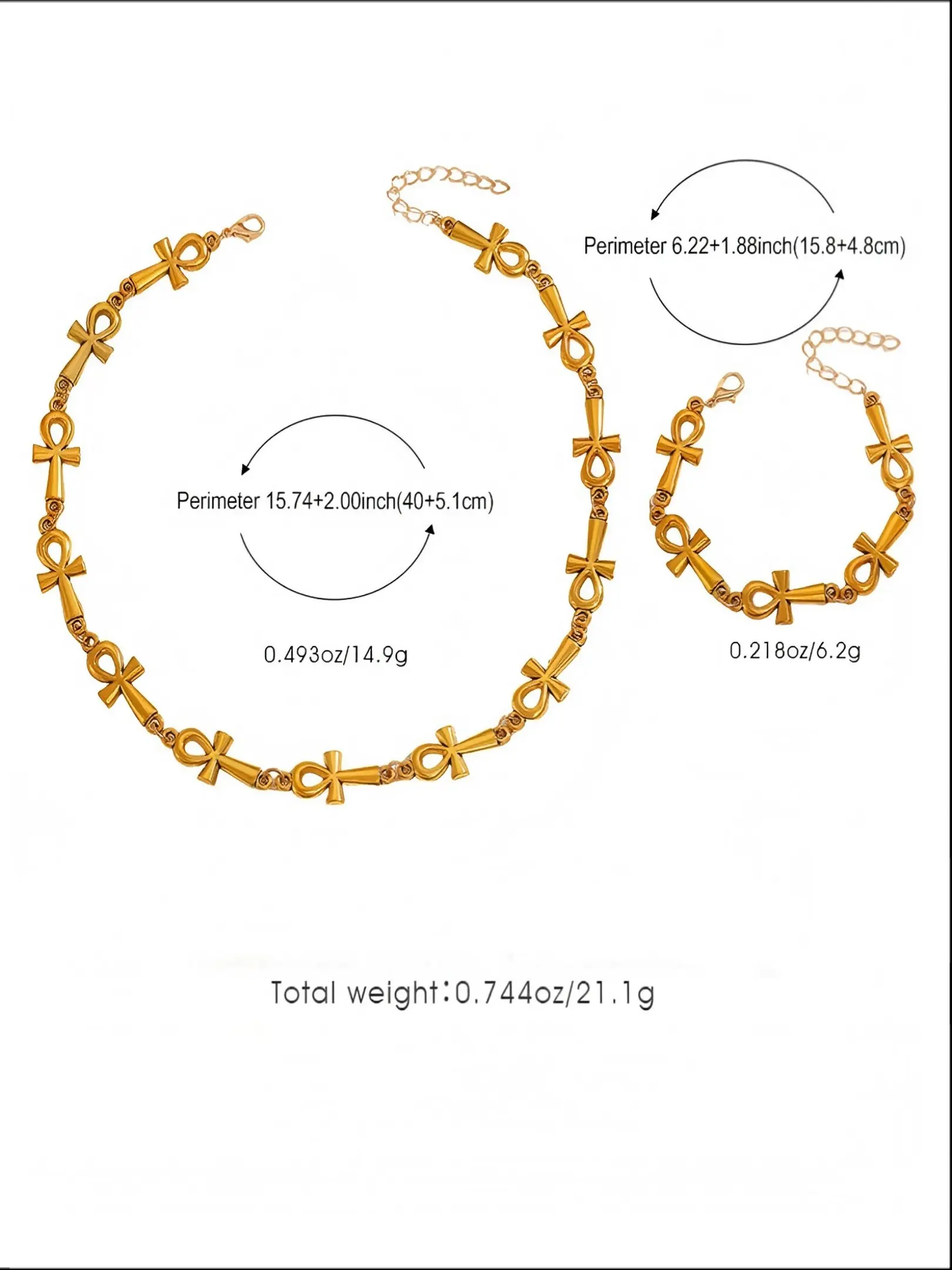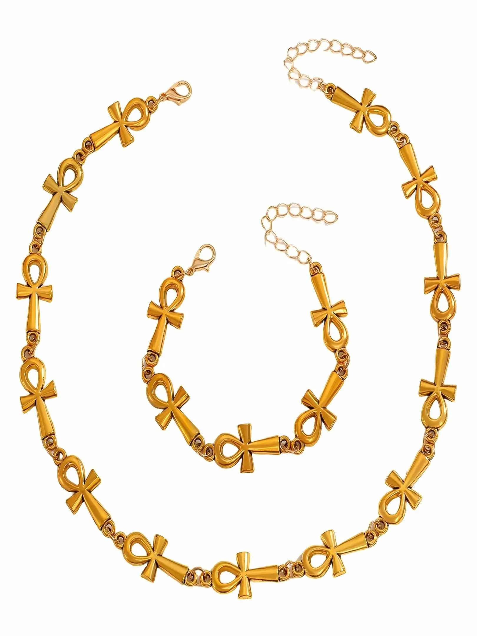 Anka Cross Necklace Bracelet Set, Alloy Hip Hop Retro Unisex Daily Wear, Lifeforce Symbol, Fade-Resistant, Adjustable, Trendy Street Style