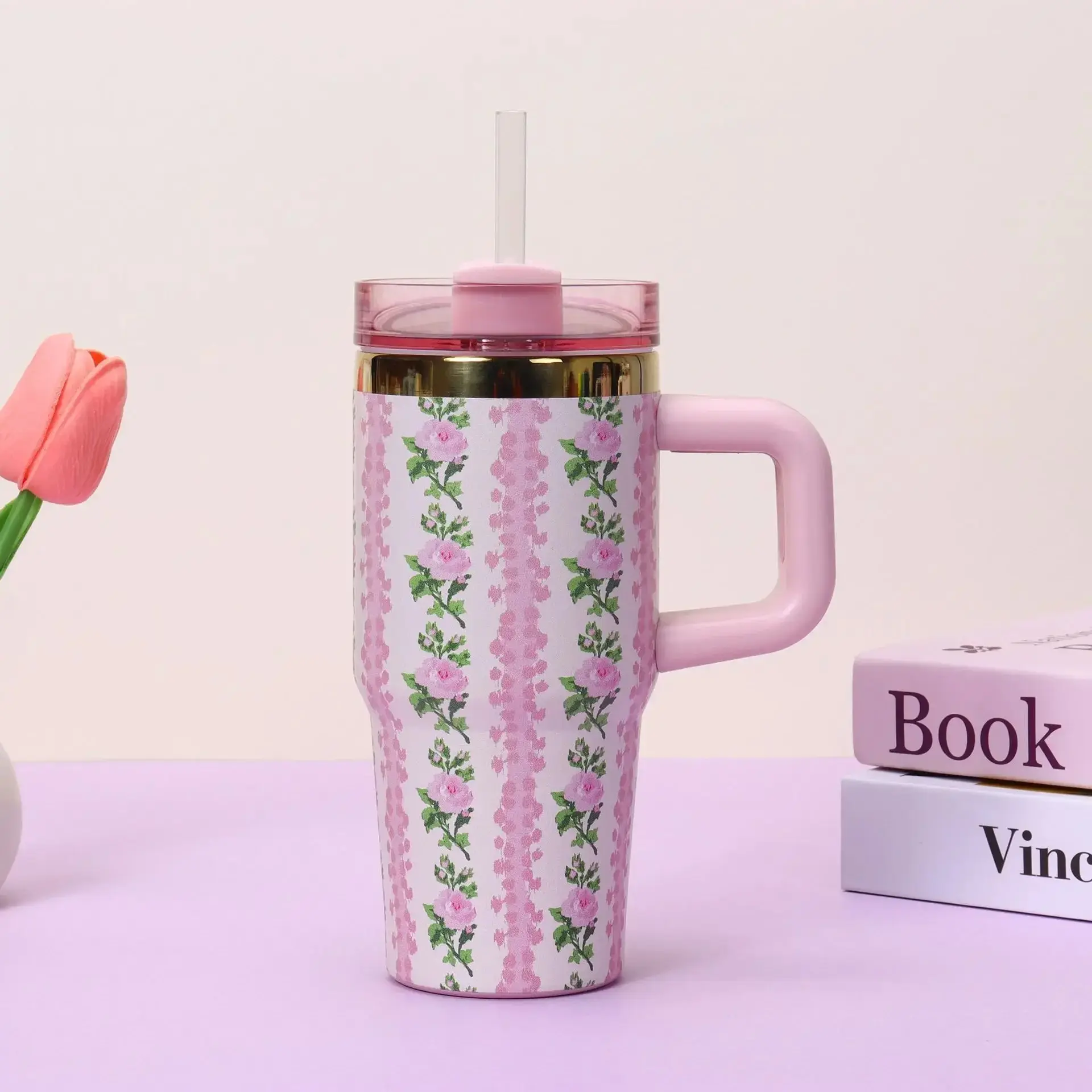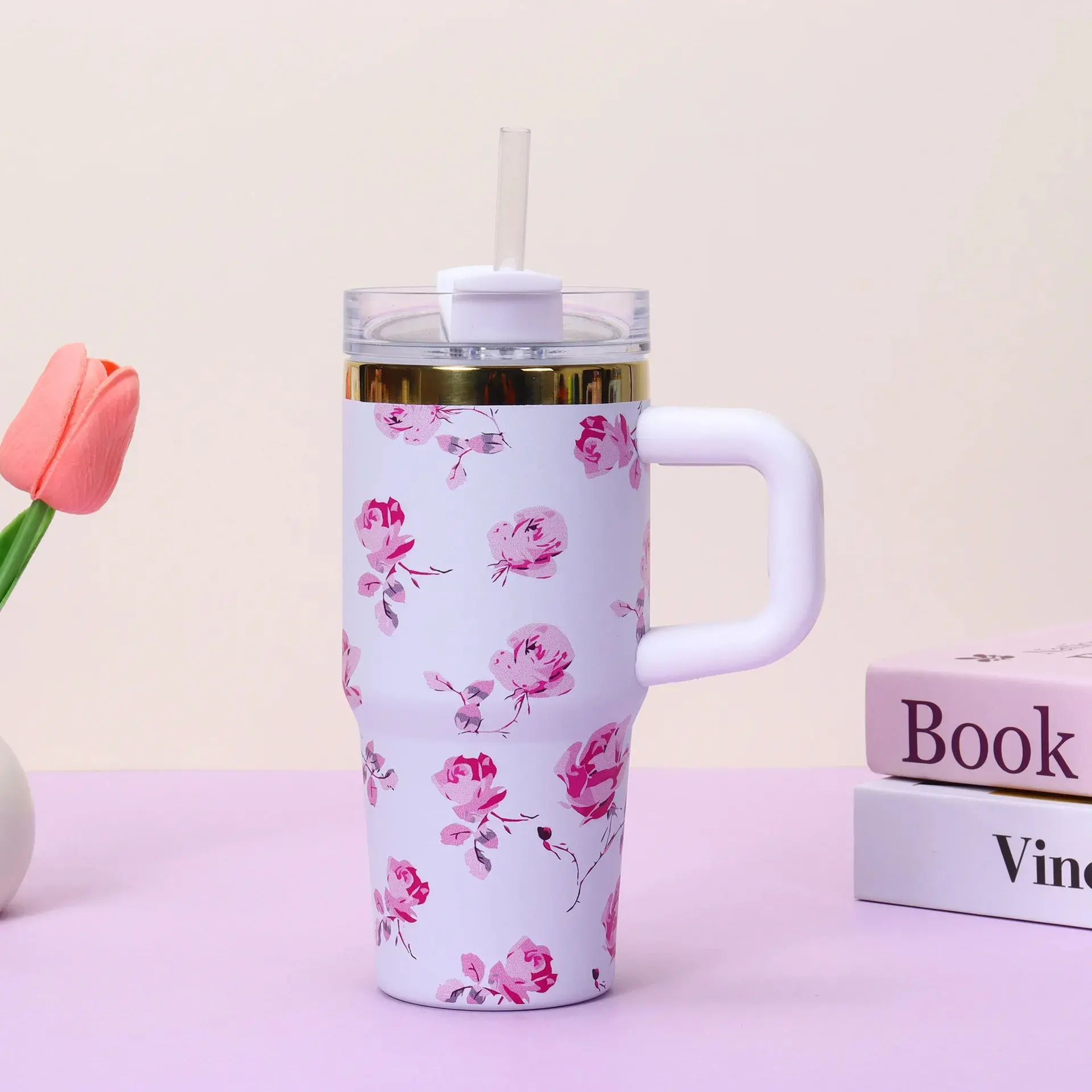 4. Handle and Straw Lid: Equipped with a convenient handle and a straw lid, the insulated water bottle allows you to sip your drink with ease while on the go. The straw is also detachable, allowing you to use the tumbler as a regular cup if preferred.