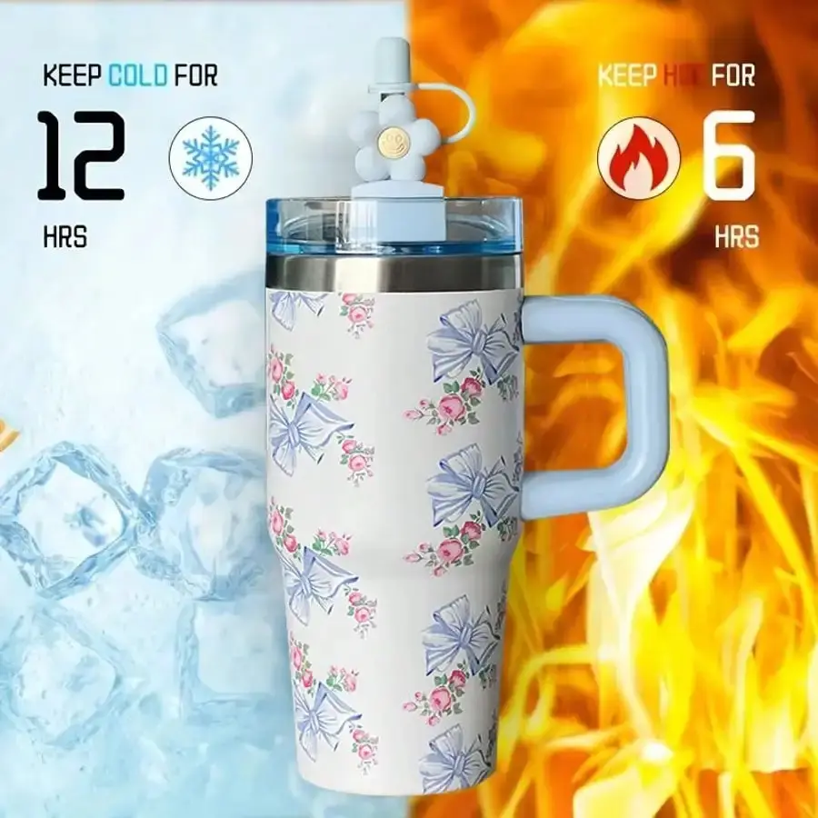 5. Multi-Purpose Use: This thermal coffee car cup is not only suitable for outdoor activities like camping, hiking, and picnicking but is also perfect for daily use. Use it to keep your coffee hot during your morning commute or to enjoy a cold drink on a hot summer day. Ideal for various occasions such as parties, travels, office, and home use. It can also serve as a beautiful gift for family and women on Valentine's Day, New Year and holiday.