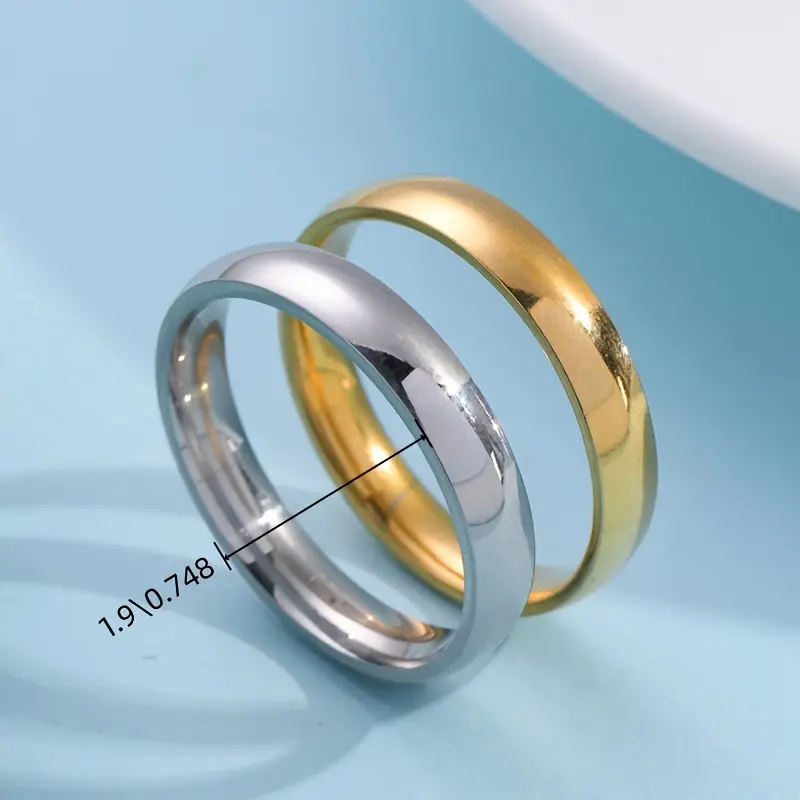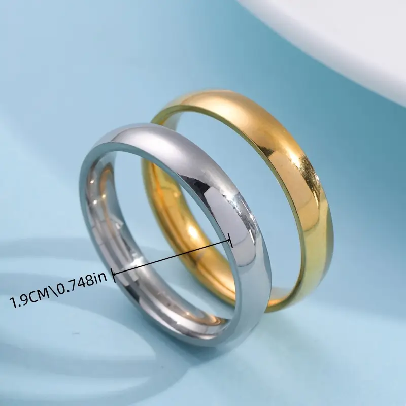 Golden and Silvery Two-tone Stainless Steel Ring, Simple Smooth Plain Band, Exclusive Couple's Matching Rings