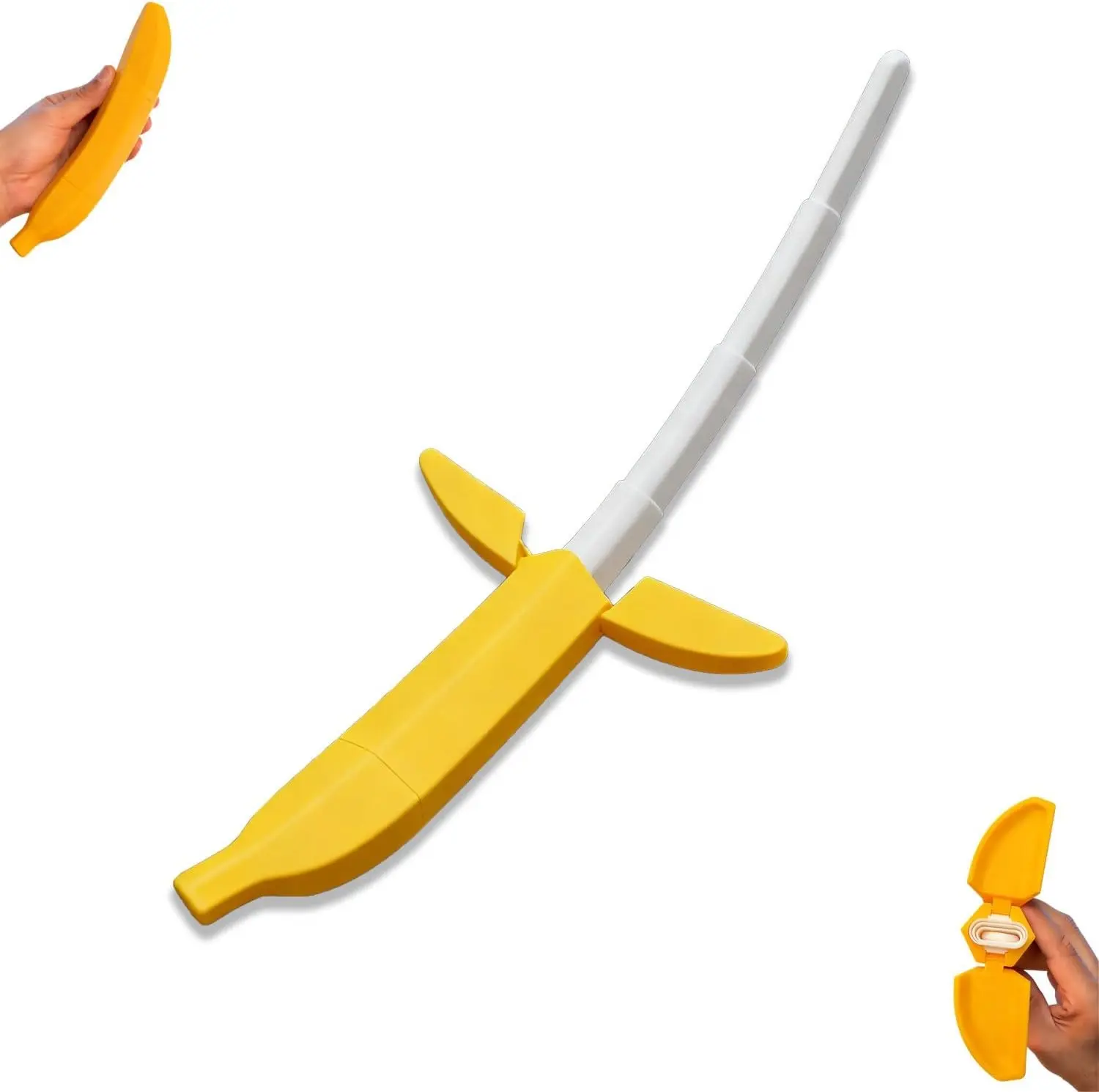 Banana Sword, 3D Printed Nana Katana, Banana Katana Sword, Hidden Blade and Smooth Motion Retractable Toy, Space Saving Telescopic Plastic Fake Katana Toy for Decor or Gift (Yellow, 1pcs)
