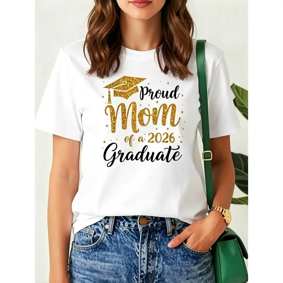 Proud Mom of a Graduate Class of 2026 T-Shirt Unisex Black Tee Featuring Graduation Cap Diploma Print and Glitter Lettering Comfortable AllSeason Round Neck