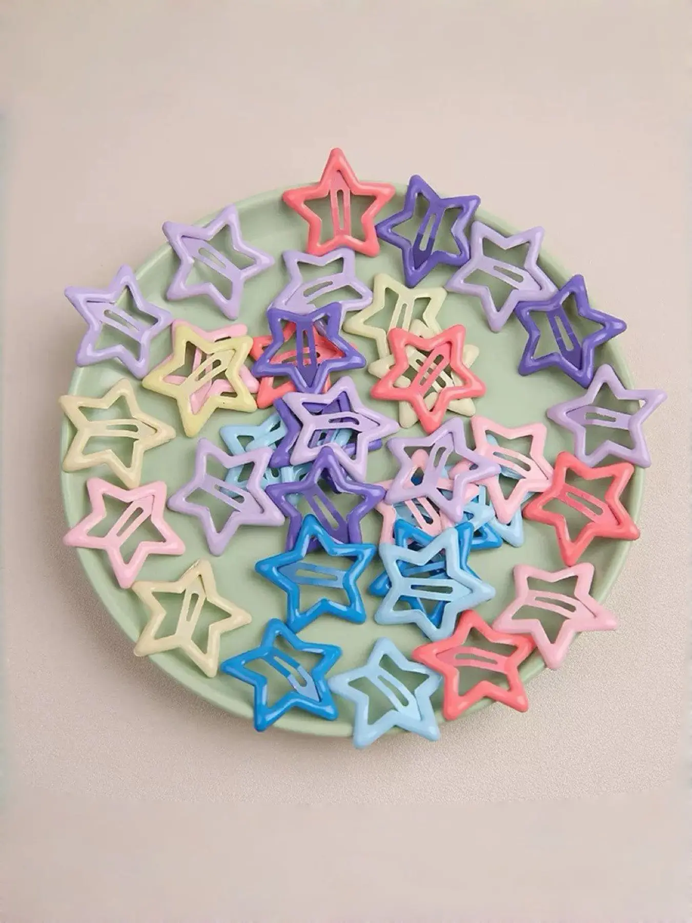 Star-Shaped Hair Clips Set of 10, Trendy Macaron Colors, Perfect for Music Festivals & Daily Use, Adorable Accessories