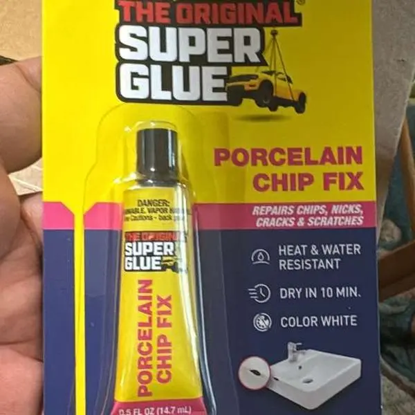 The Porcelain Chip Fix from The Original Super Glue Corporation is made to fix scratches, chips, and nicks on white appliances as well as porcelain kitchen and bathroom fixtures. It will not discolor, is heat-resistant to 250°F, and is water-resistant. It dries to the touch in about 10 minutes. Be sure to use this product in a well-ventilated area as well as protect work surfaces.