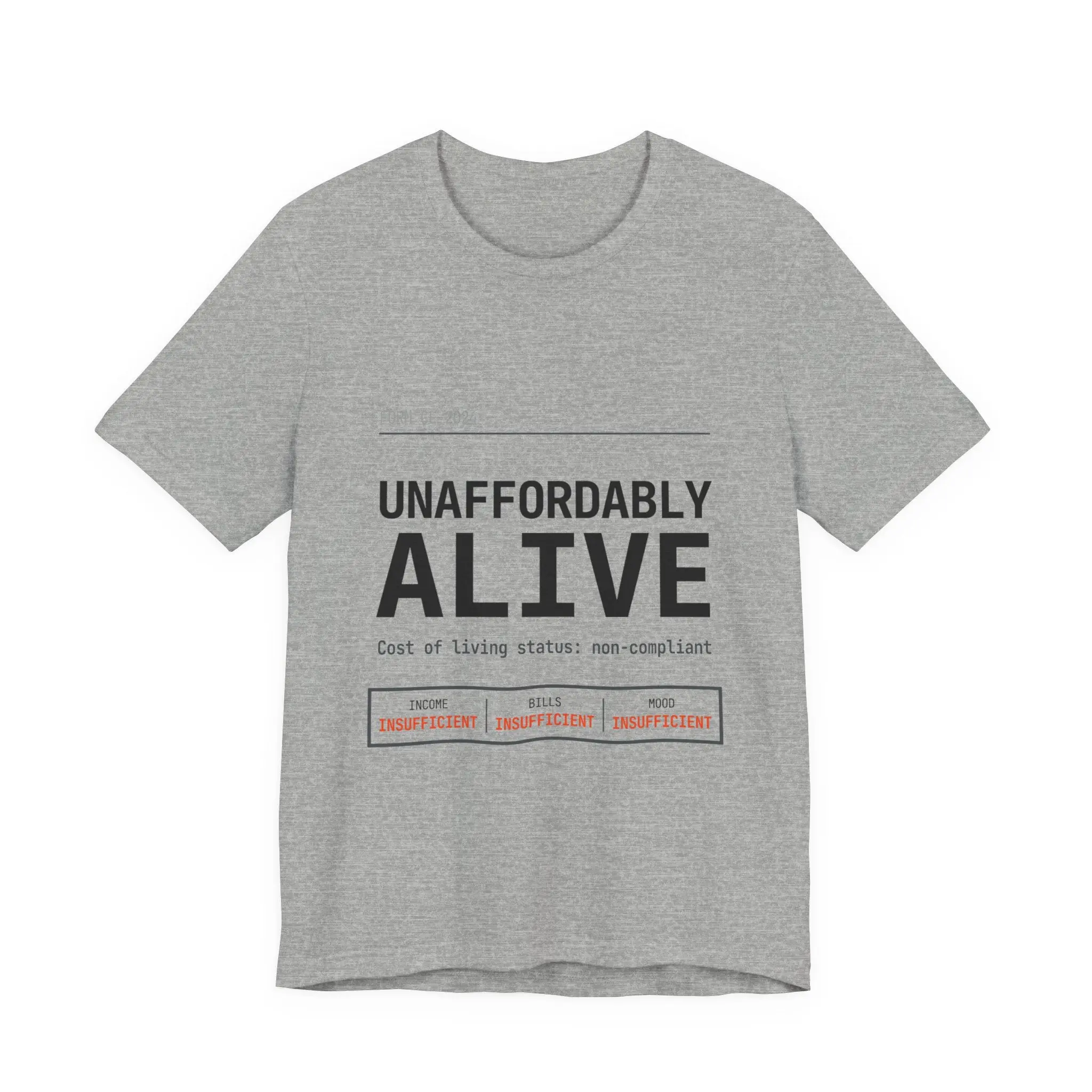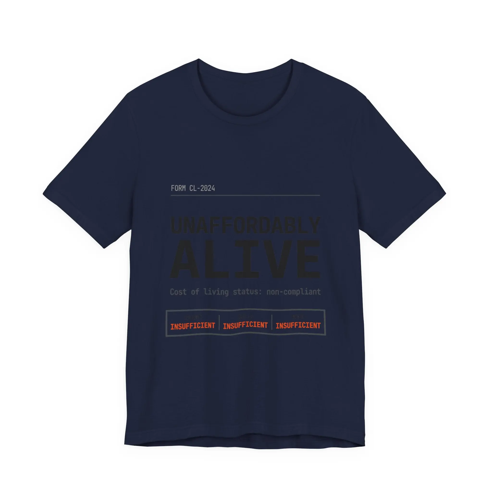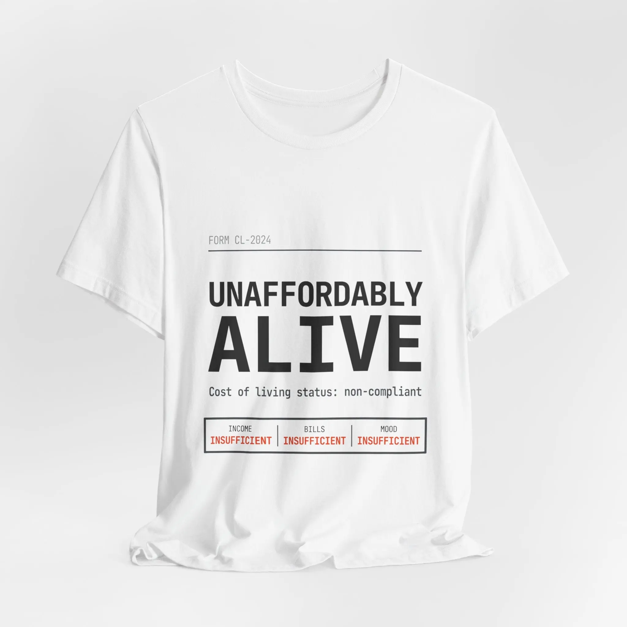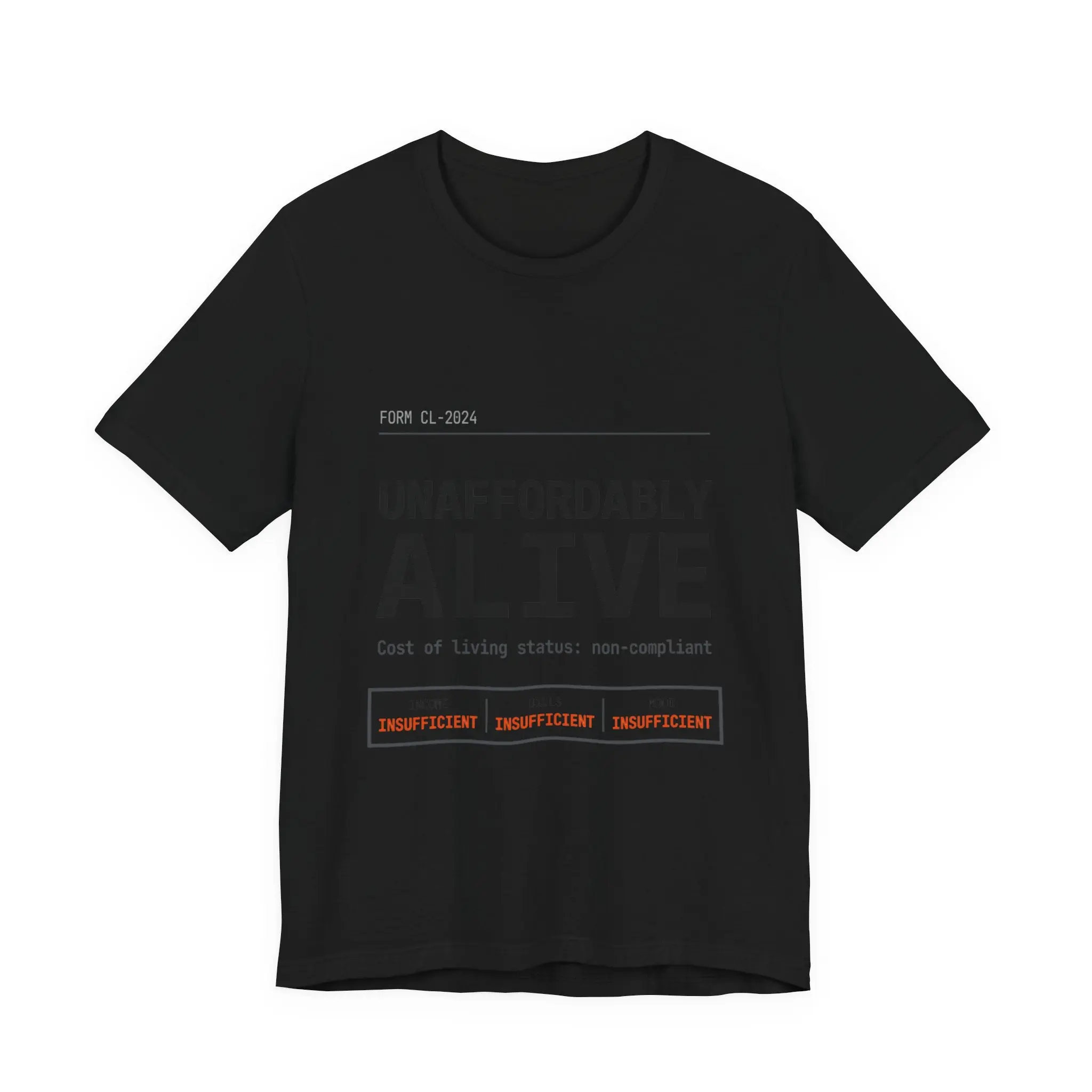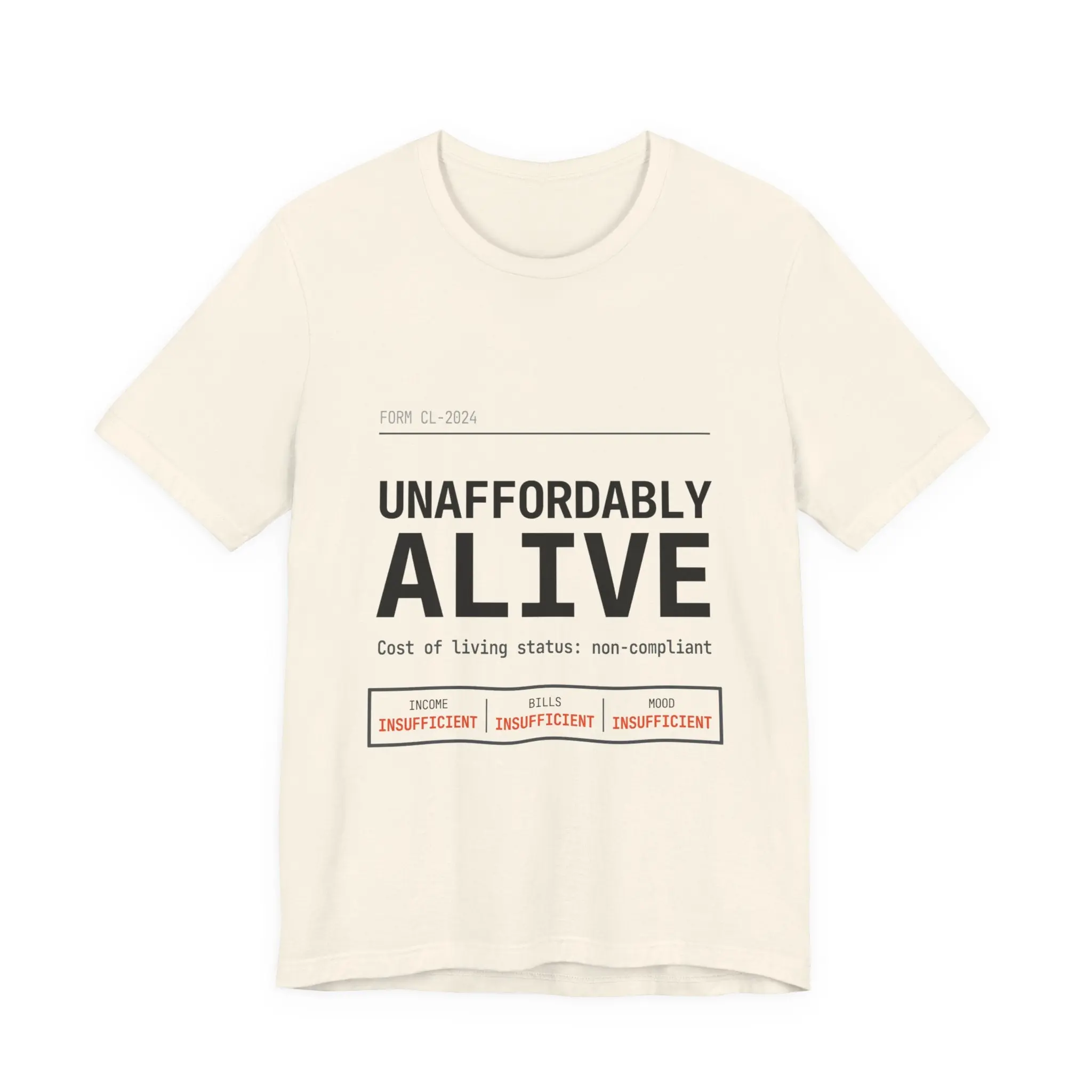 Deadpan, receipt-style tee that reads like a bureaucratic status update on everyday financial strain. Bold monospaced headings and small-line subtext deliver a faux-official, budget-humor vibe—muted, utility-minded design that connects with shoppers feeling cost-of-living fatigue. The layout mimics a receipt/label aesthetic to lean into the trend’s “receipt aesthetic” and everyday-nihilism language without partisan messaging.