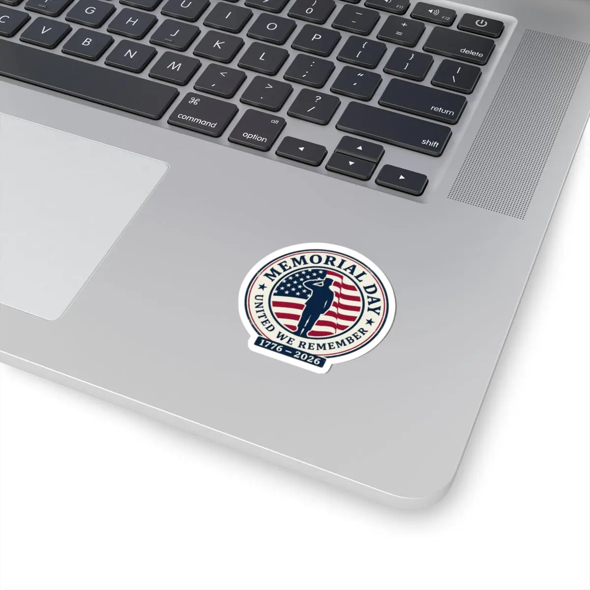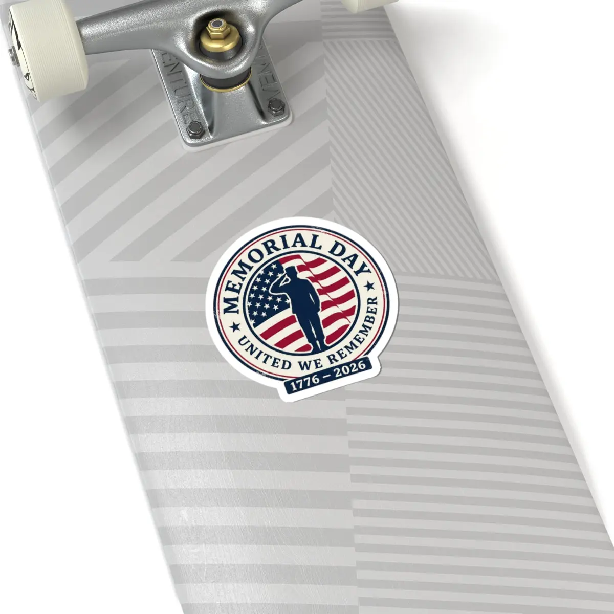 A vintage-inspired Memorial Day kiss-cut sticker celebrating the USA 250 semiquincentennial with a proud, reflective tone. The design pairs a distressed red, white, and navy palette with a silhouetted saluting figure and bold circular date banding (1776–2026) to read as both commemorative and wearable Americana. Suits shoppers looking for nostalgia-forward patriotic graphics and Memorial Day remembrance accents for personal items and community events.