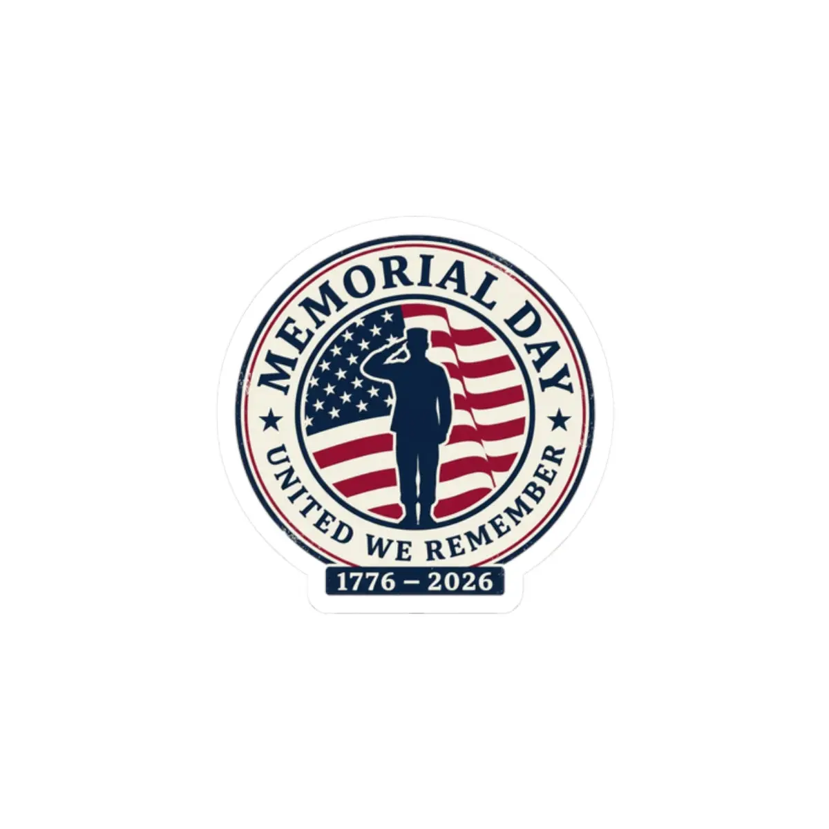 Memorial Day 1776–2026 Sticker | USA 250, vintage distressed patriotic red white blue