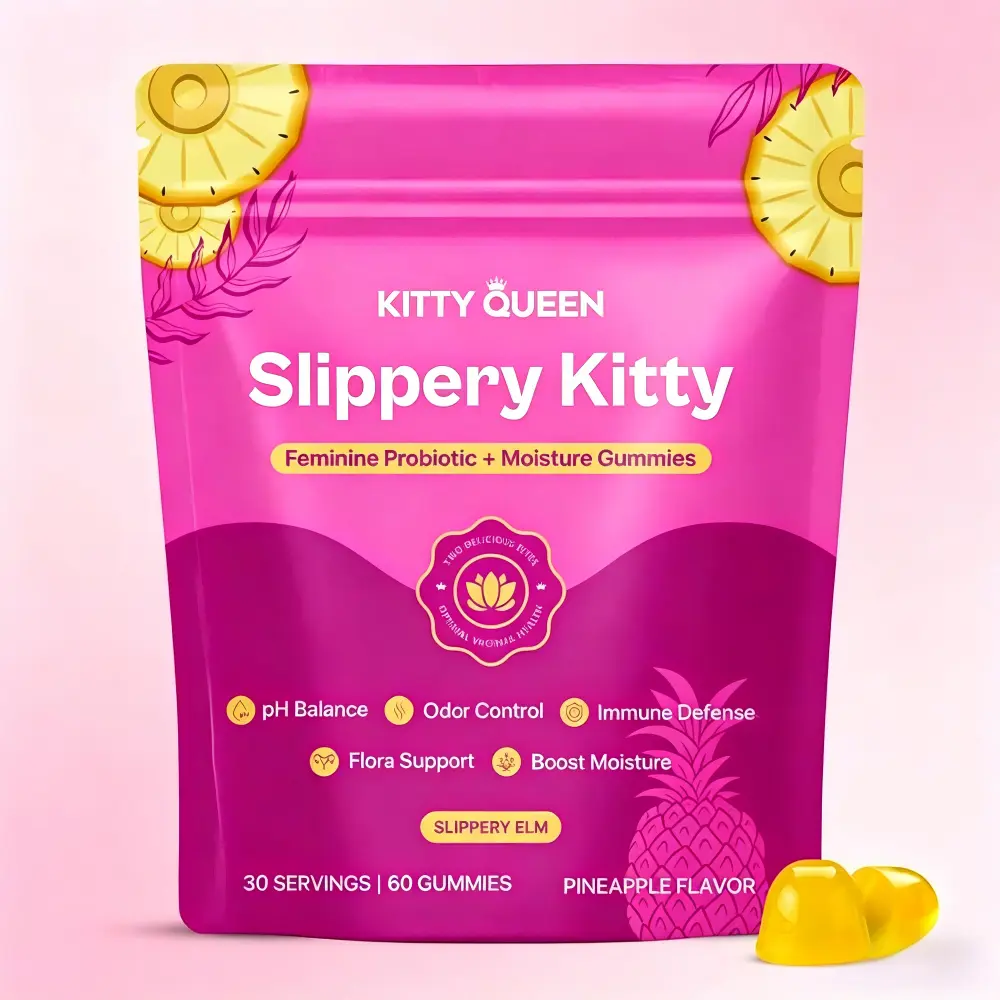 Her Juicy Feminine Probiotics Gummies offer a complete all-in-one daily solution specially crafted for women’s unique wellness needs. Formulated with a targeted Lactobacillus probiotic blend, nourishing prebiotics, and soothing slippery elm bark, these gummies support healthy vaginal flora, balanced pH levels, and relief from occasional dryness. Infused with a bright Hawaiian pineapple flavor, they taste delicious and eliminate the hassle of hard-to-swallow pills. Each bottle contains 60 gummies, providing a full month of convenient, gentle support for intimate comfort, digestive health