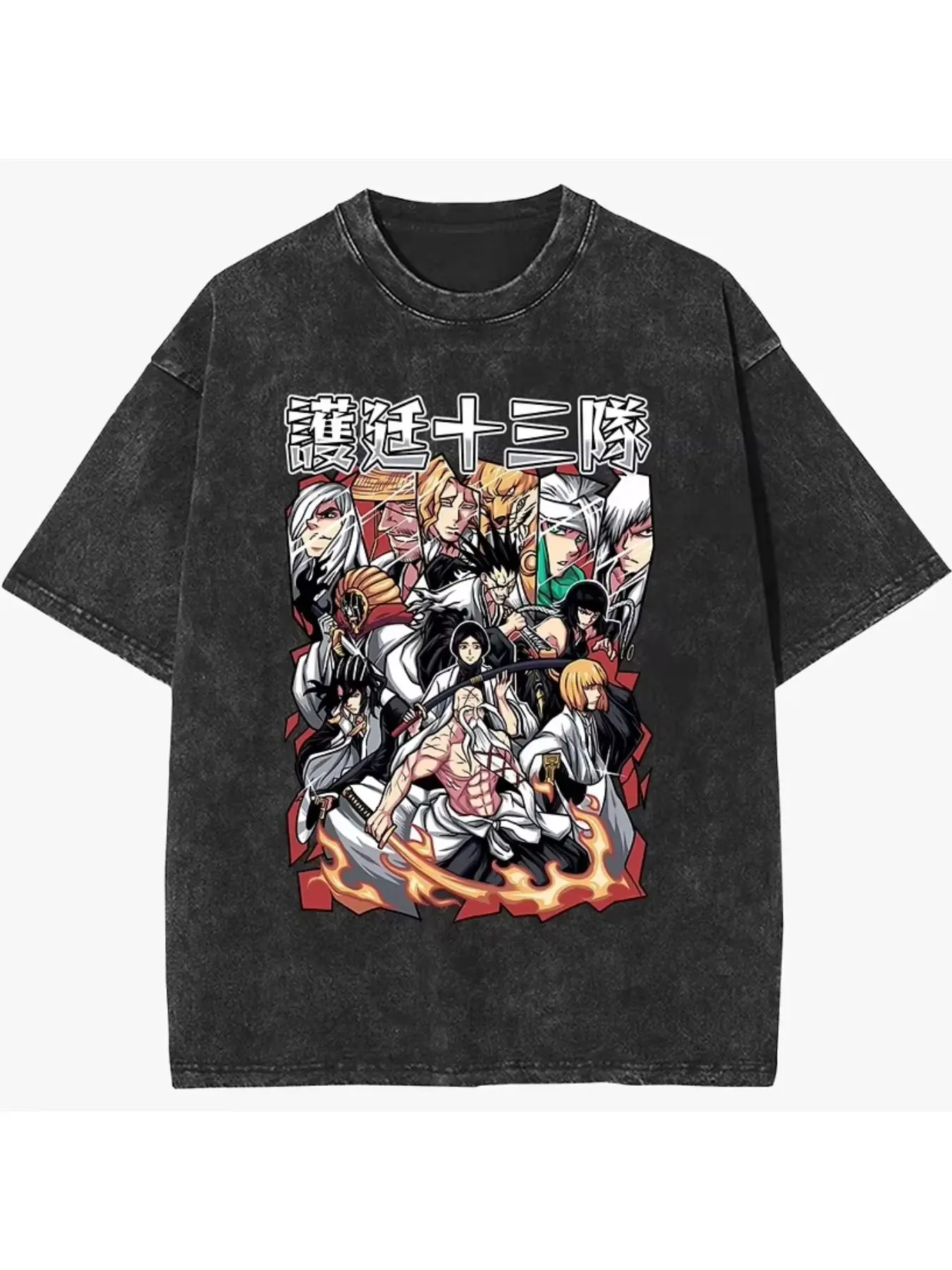 Bleached Ichiro Kurosaki Multi Shaped Hollow and Zangetsu Retro Washed Anime Printed T-shirt 2026 Men's and Women's Summer Oversized Shirt Casual Streetwear