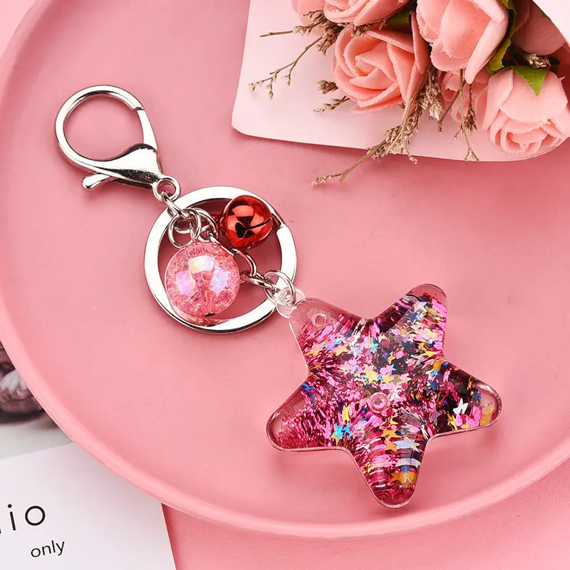 Add a magical touch to your everyday style with this Acrylic Star Liquid Quicksand Keychain. Featuring a floating glitter liquid design inside a star-shaped acrylic charm, this accessory creates a mesmerizing “shaker” effect that stands out on any bag or keyring.