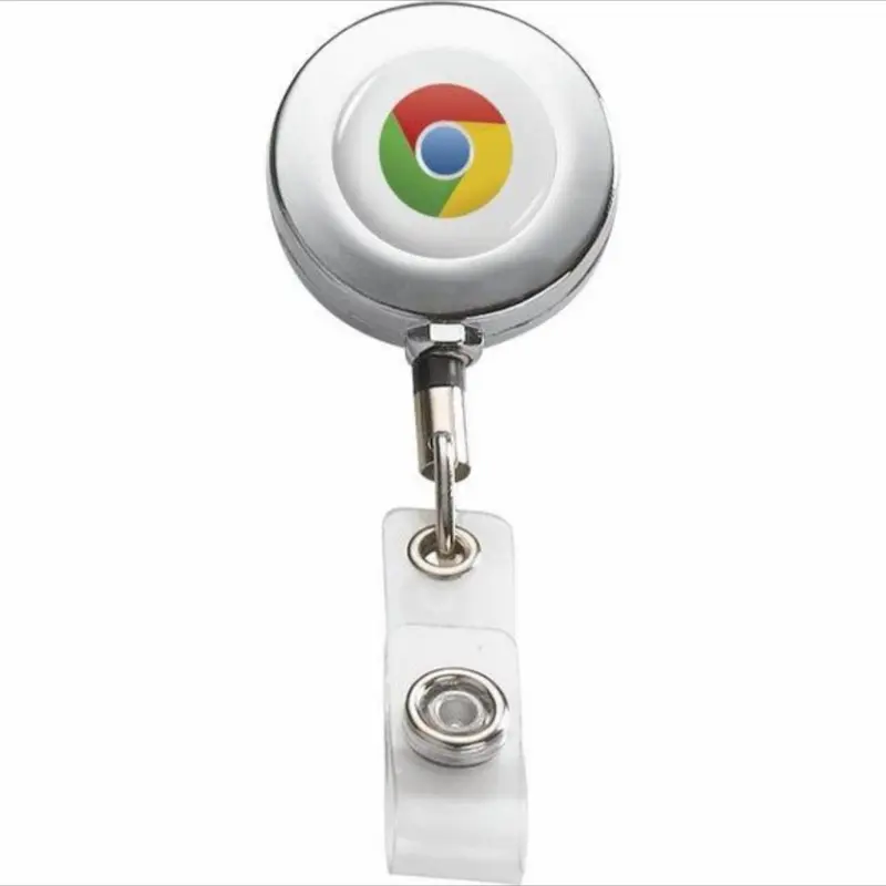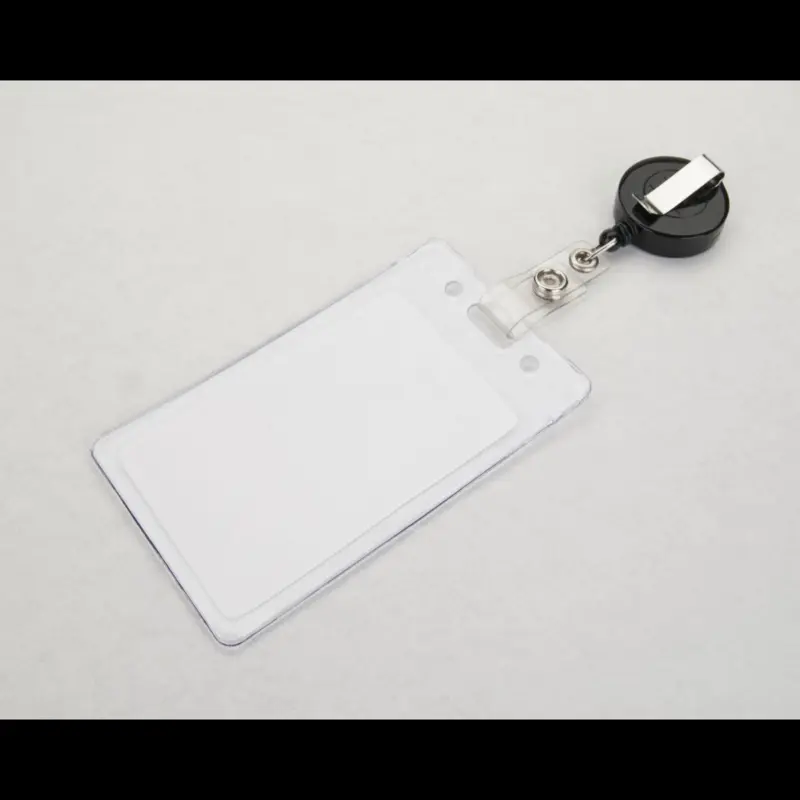 This badge reel clips securely onto clothing or lanyards and features a smooth retractable cord for convenient daily use.