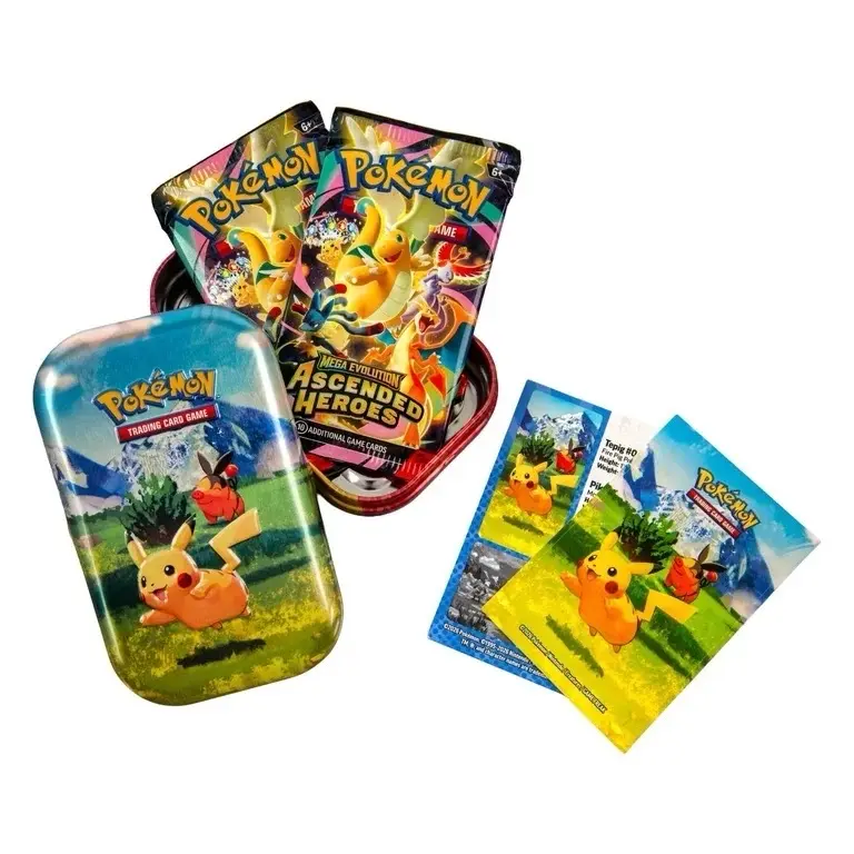 ✨ Discover the Ascended Heroes, Mini Tin! This compact tin is perfect for fans of miniature collectibles. It features a sleek design, ideal for storing or displaying your favorite miniatures. The tin's size makes it a convenient addition to any collection.