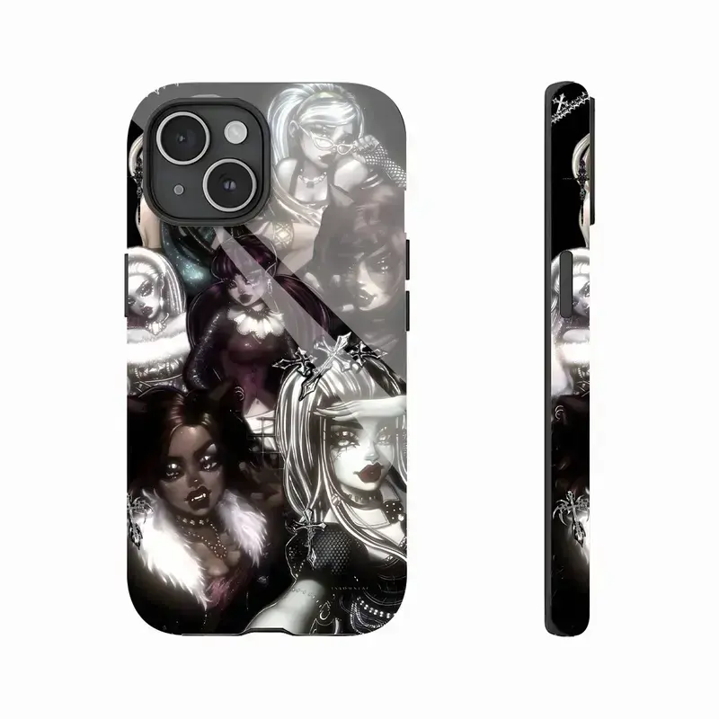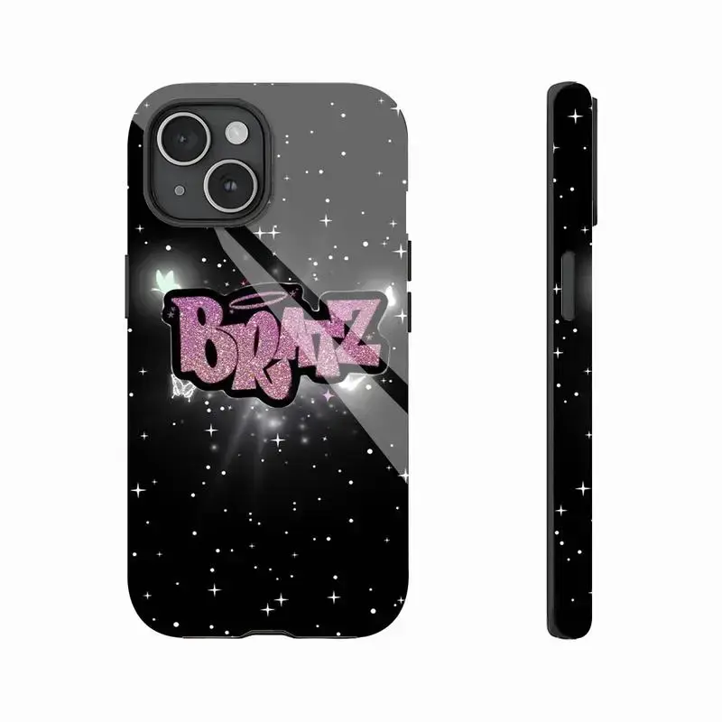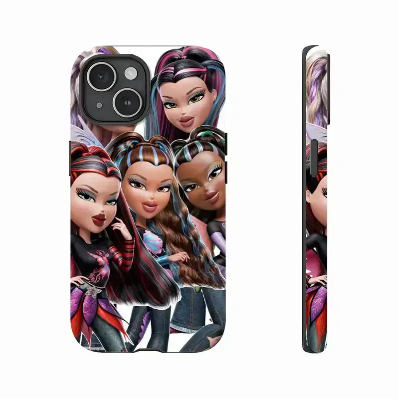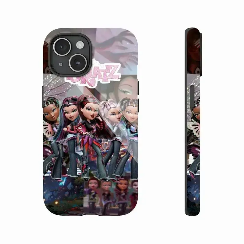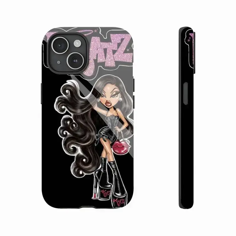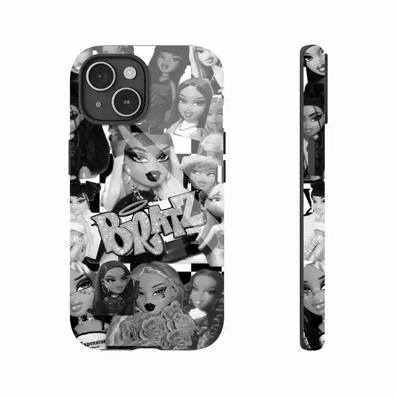 Bratz Edgy Black Pink Aesthetic Y2K Nostalgia Cartoon Doll Design Art Trendy Tough Phone Case. Trendy 2000s Pop Culture Heavy Duty Shockproof Protective Smartphone Cover for iPhone 17 Pro Max 16 Air 15 14 13 12 11.