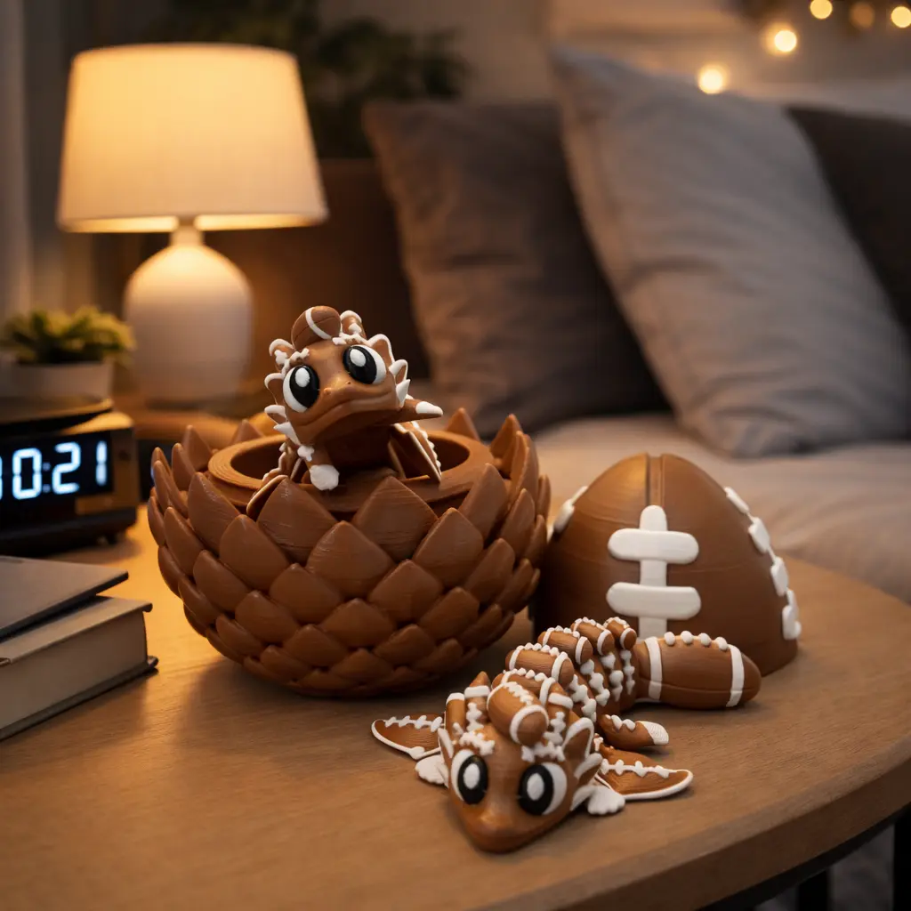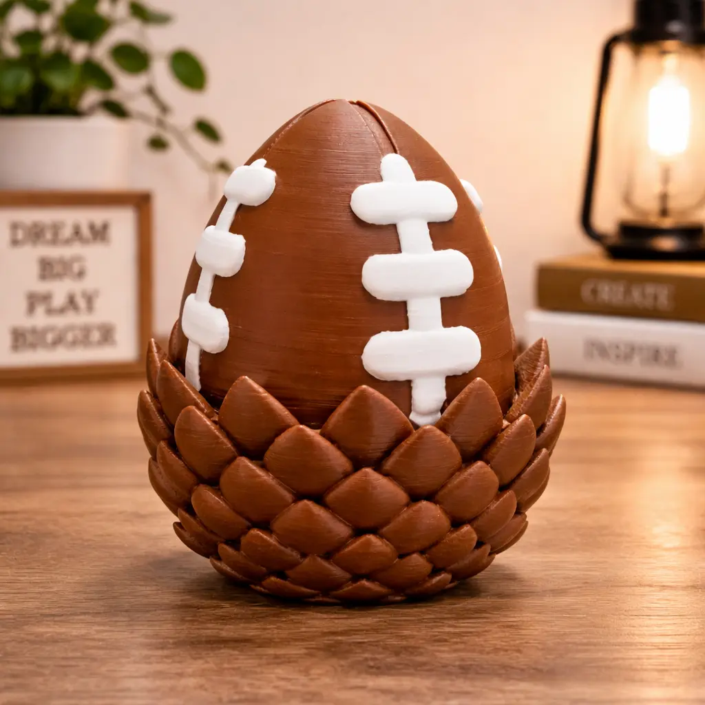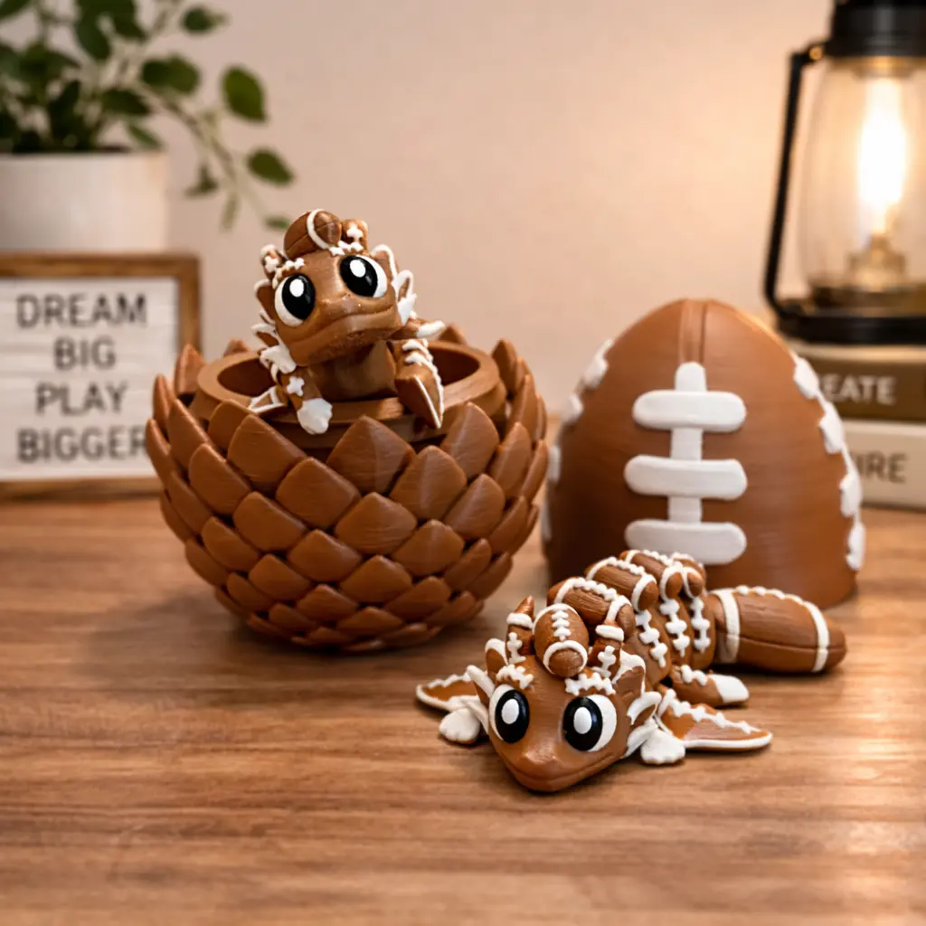 This American Football Dragon Egg Figurine features a football-inspired outer shell combined with a detailed dragon egg design. Inside, it reveals two mini dragon figures, creating a bold layered display that stands out on any desk or shelf. A unique piece that blends sports elements with fantasy aesthetics.