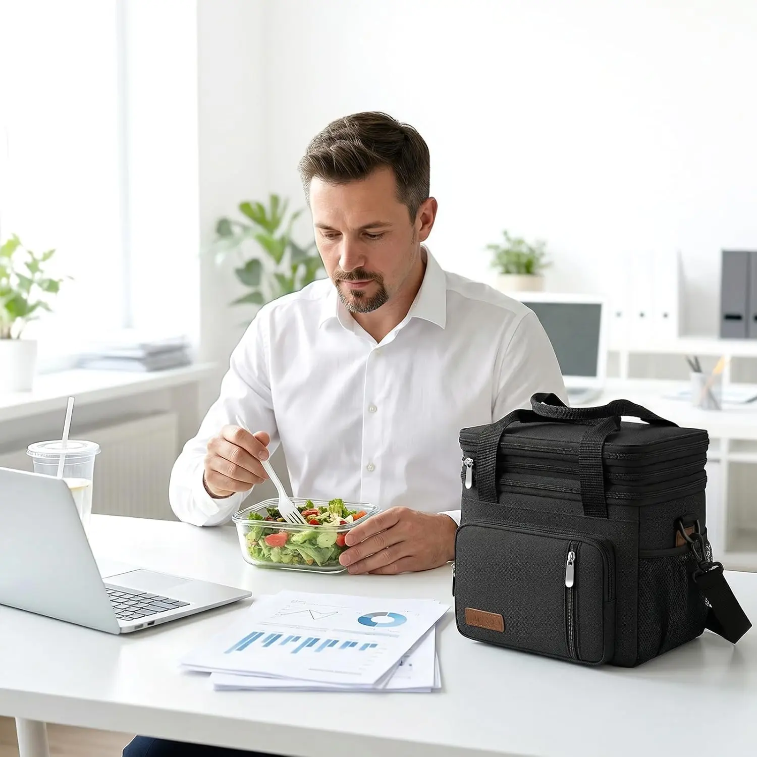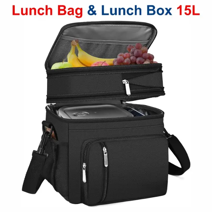 ·【Large-Capacity Double-Layer Lunch Bag】It measures 10.1" x 7.7" x 9.1". Expanded size: 10.1" x 7.7" x 10.3". Different foods can be placed on the upper and lower layers to prevent food from being piled up and squeezed. The large-capacity lunch bag can easily hold all your beer, snacks, drinks, sandwiches, fruits, lunch boxes