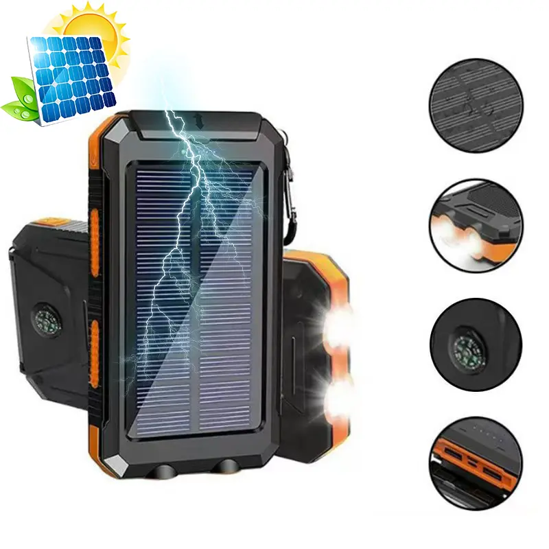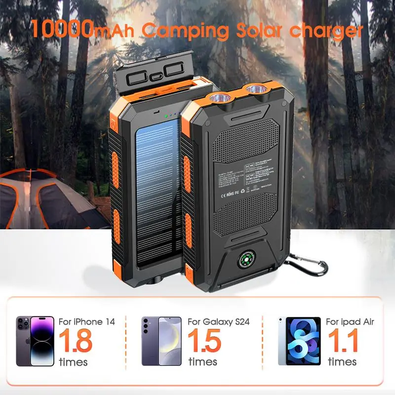 Solar Charger Power Bank 10000mAh Solar Phone Charger, Portable Charger Fast Charger Dual USB Ports Built-in LED Flashlight and Compass, IP65 Waterproof Portable Power Bank for Outdoor Activities-IP65 Waterproof Outdoor Phone Charger