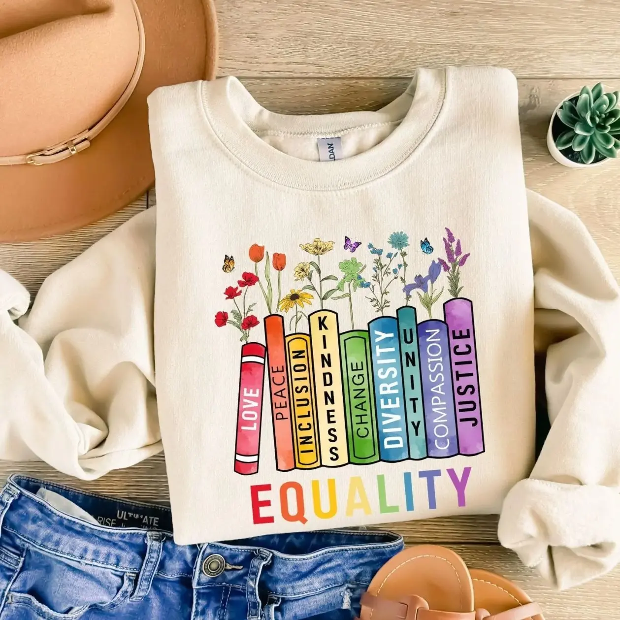 Equal Rights Shirt, Book Flower Shirt, Social Justice T-Shirt, Equality Peace Love Kindness Shirt, Feminist Gift for Her, Women Rights Shirt U