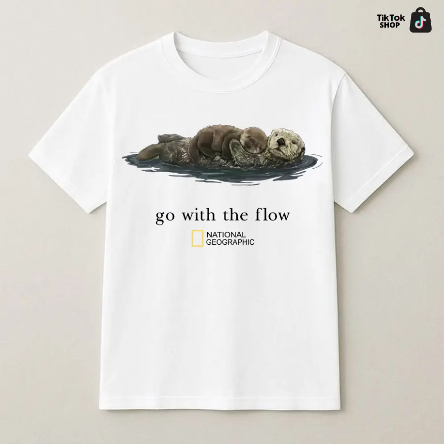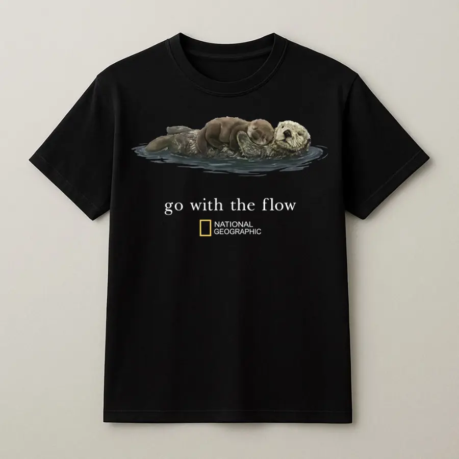 Go With The Flow Otter T-Shirt Cute Sea Otter Graphic Tee National Geographic Style Animal Lover Shirt Aesthetic Nature Tee Gift Idea Unisex Casual