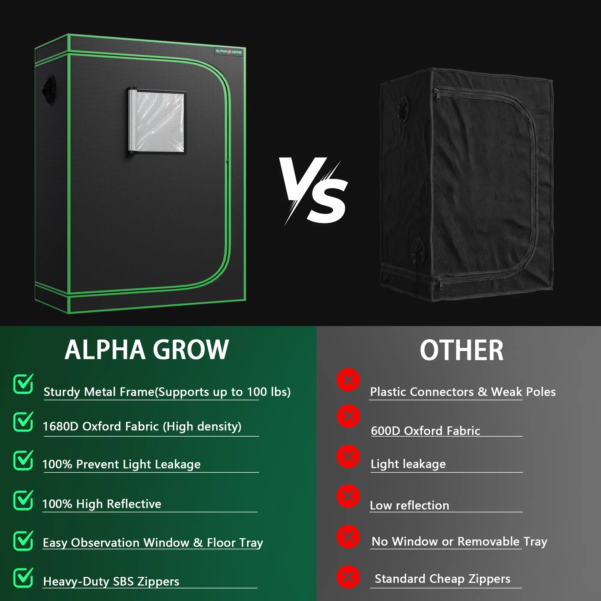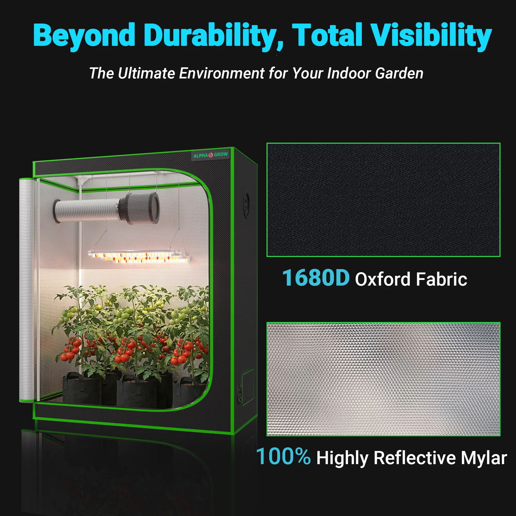 1 x ALPHAGROW Professional 1680D Grow Tent