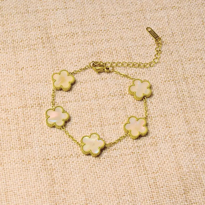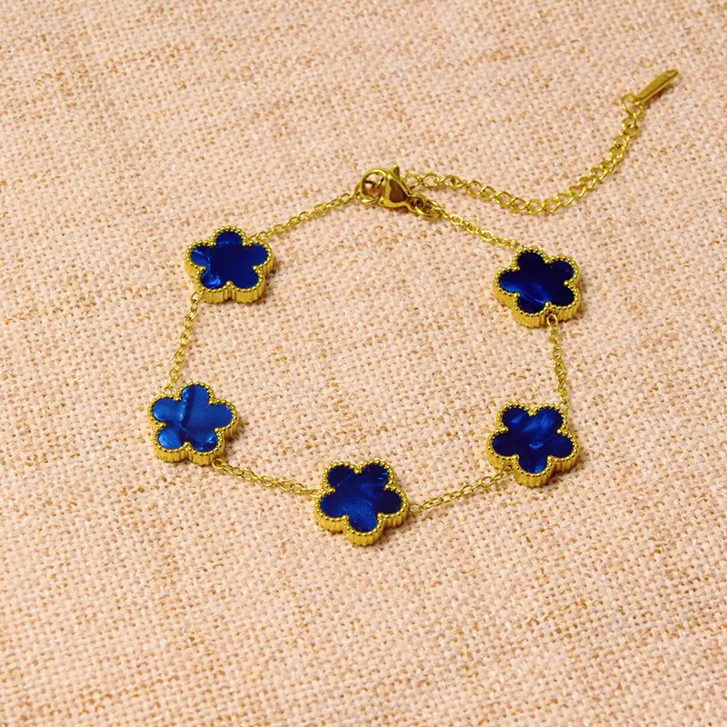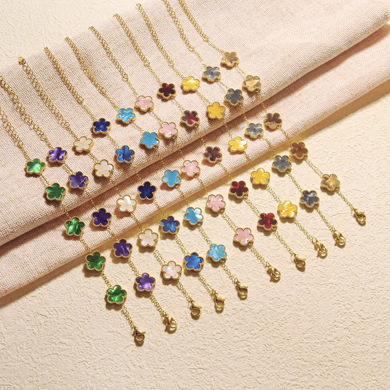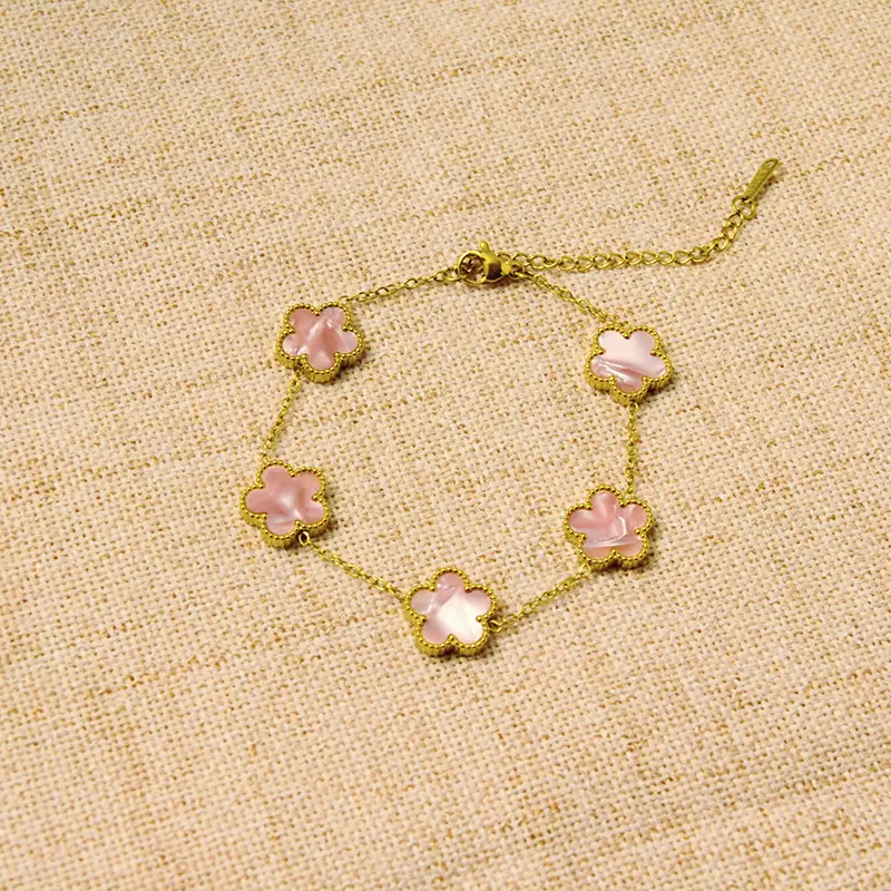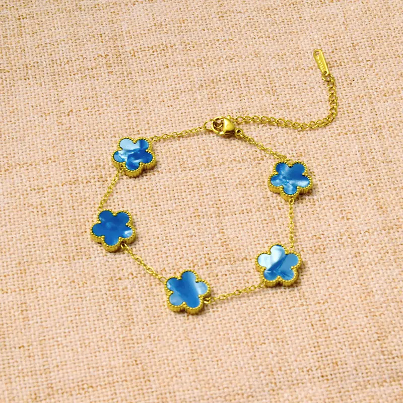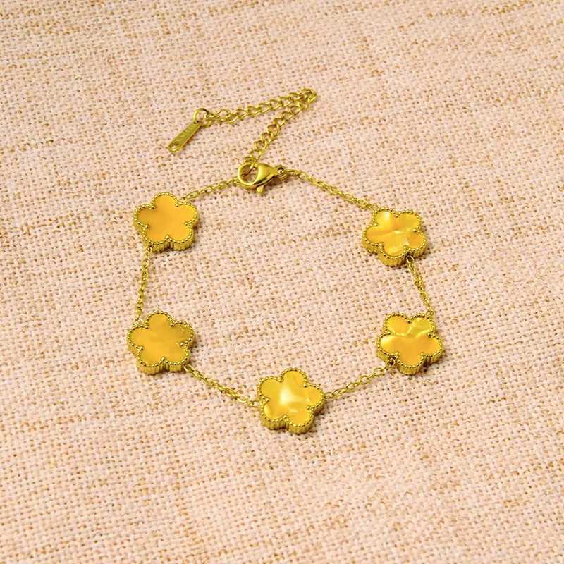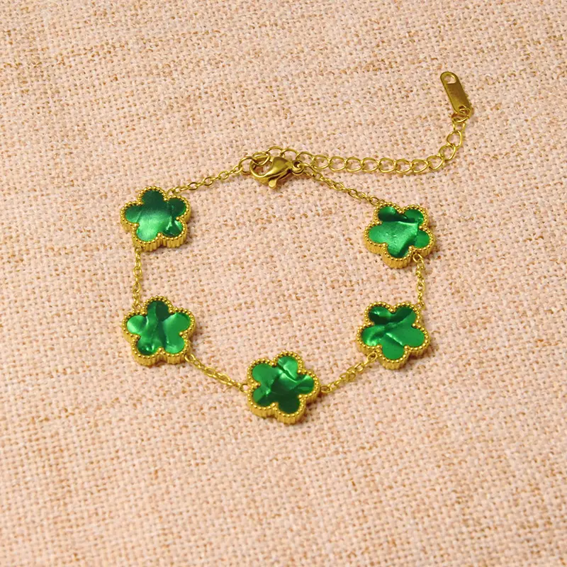 Titanium steel lucky clover five-leaf clover gradient bracelet, light luxury and high-end feel, popular stainless steel jewelry for women