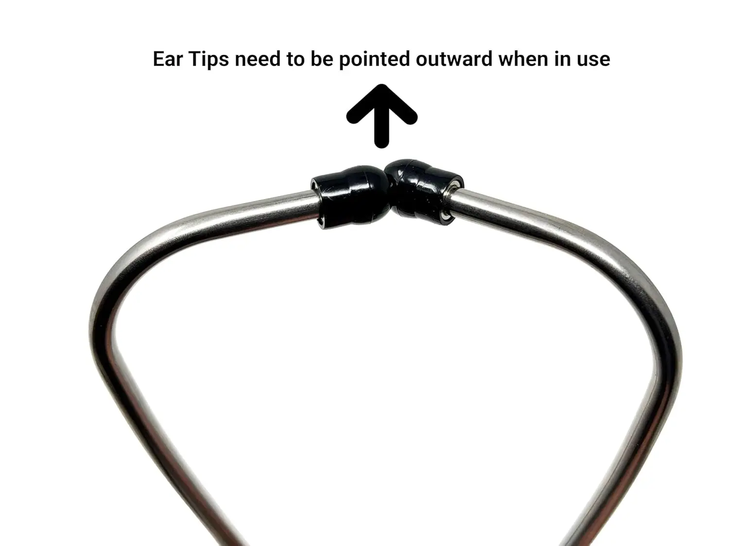 ·CORRECT EAR TIP INSERTION: A note emphasizes the importance of correctly inserting the ear tips, directing users to the enclosed instructions and images for proper guidance, ensuring the stethoscope's effectiveness and user comfort.