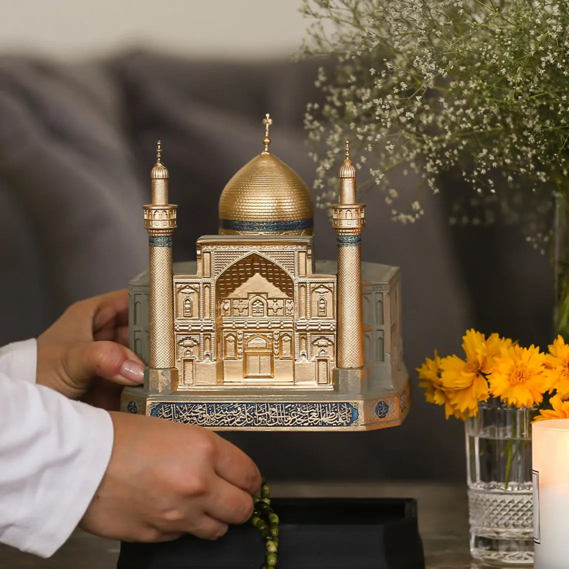 This intricately crafted statue is a tribute to the Holy Shrine of Imam Ali (AS) in Najaf, Iraq — a site held close to the hearts of millions. Designed for those who find peace in the mere sight of this sacred place, no matter how far they are, this model is more than decor — it's a heartfelt symbol of faith.