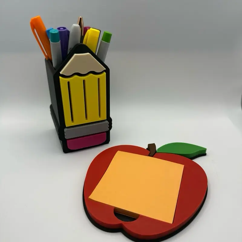 Can be sold together or separately! Upgrade any workspace with this adorable teacher desk bundle featuring a pencil-shaped pen holder and apple sticky note holder! This matching set brings both organization and charm to any desk, making it perfect for teachers, students, or anyone who loves fun and functional décor. The pencil holder keeps pens, markers, and supplies neatly organized, while the apple note holder provides easy access to sticky notes for reminders and to-do lists. Designed to be both practical and eye-catching, this bundle is ideal for classrooms, home offices, or study spaces. It also makes a thoughtful and unique gift for teacher appreciation, back-to-school, or holidays