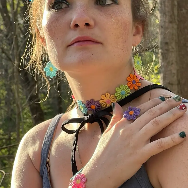 The First Bloom Set was created to feel like the very first flowers of spring—delicate, colorful, and full of quiet magic. Each piece is carefully handmade, designed to wrap around you like a blooming garden you can wear.