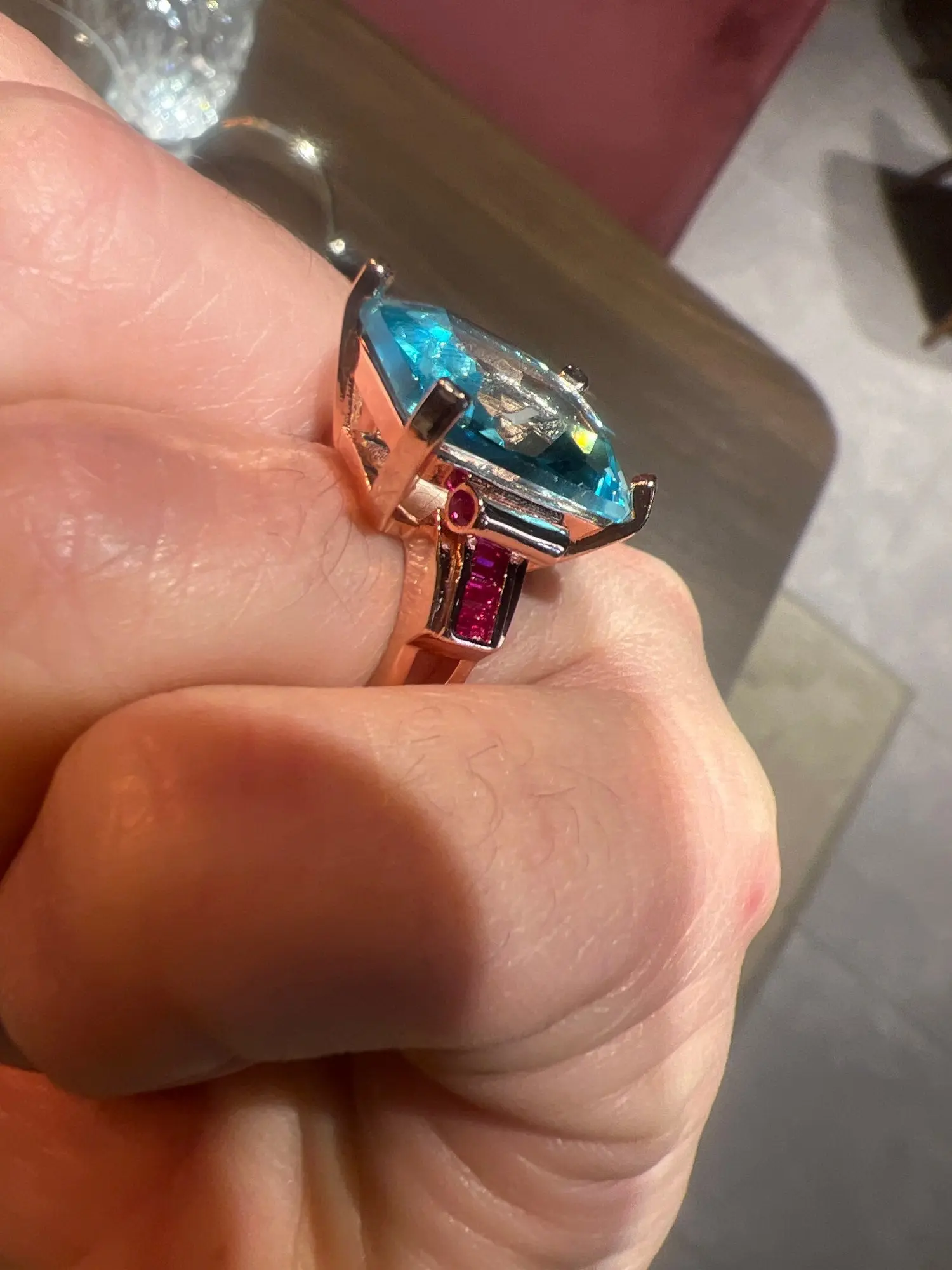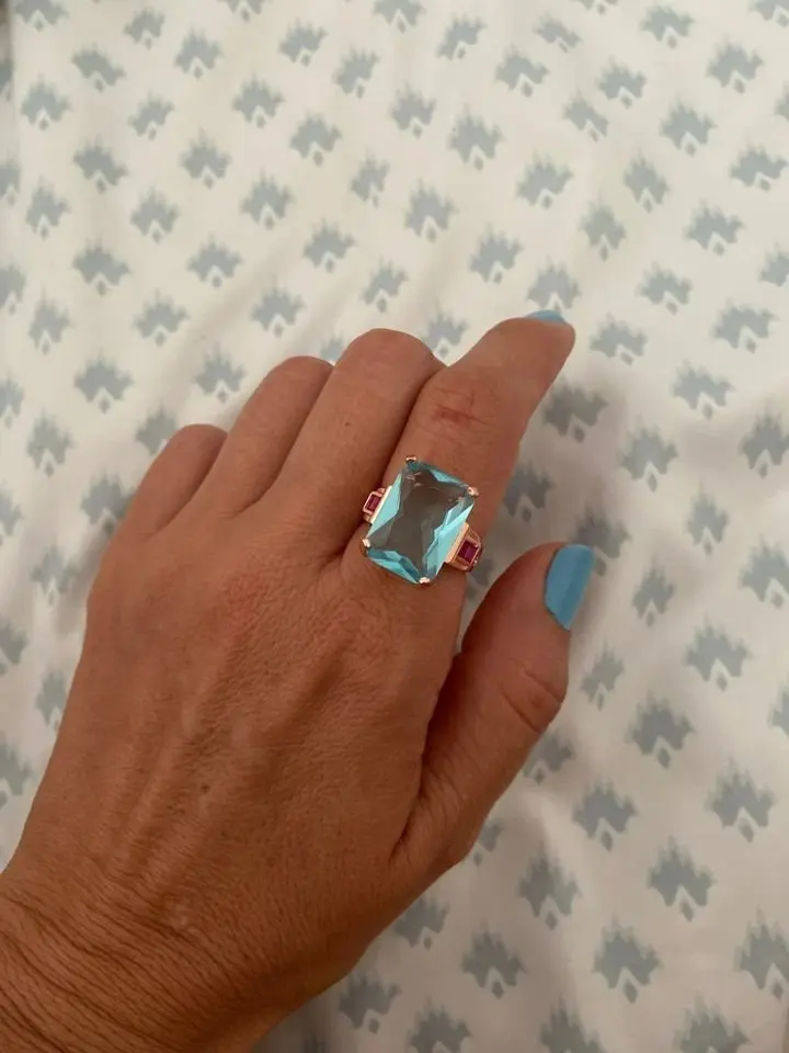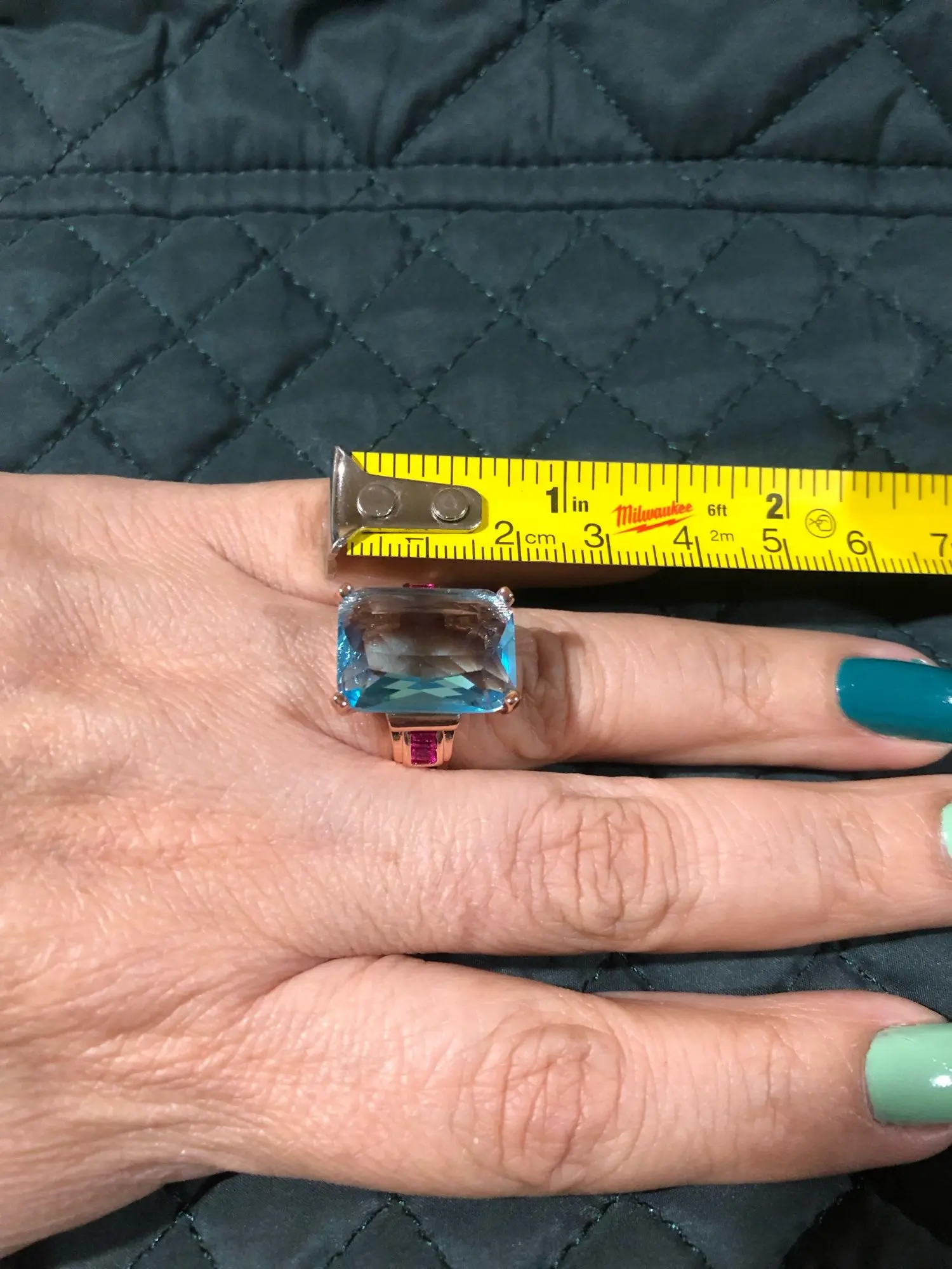 Huge Sterling Silver Sea Blue Rhinestone Emerald Cut Ring