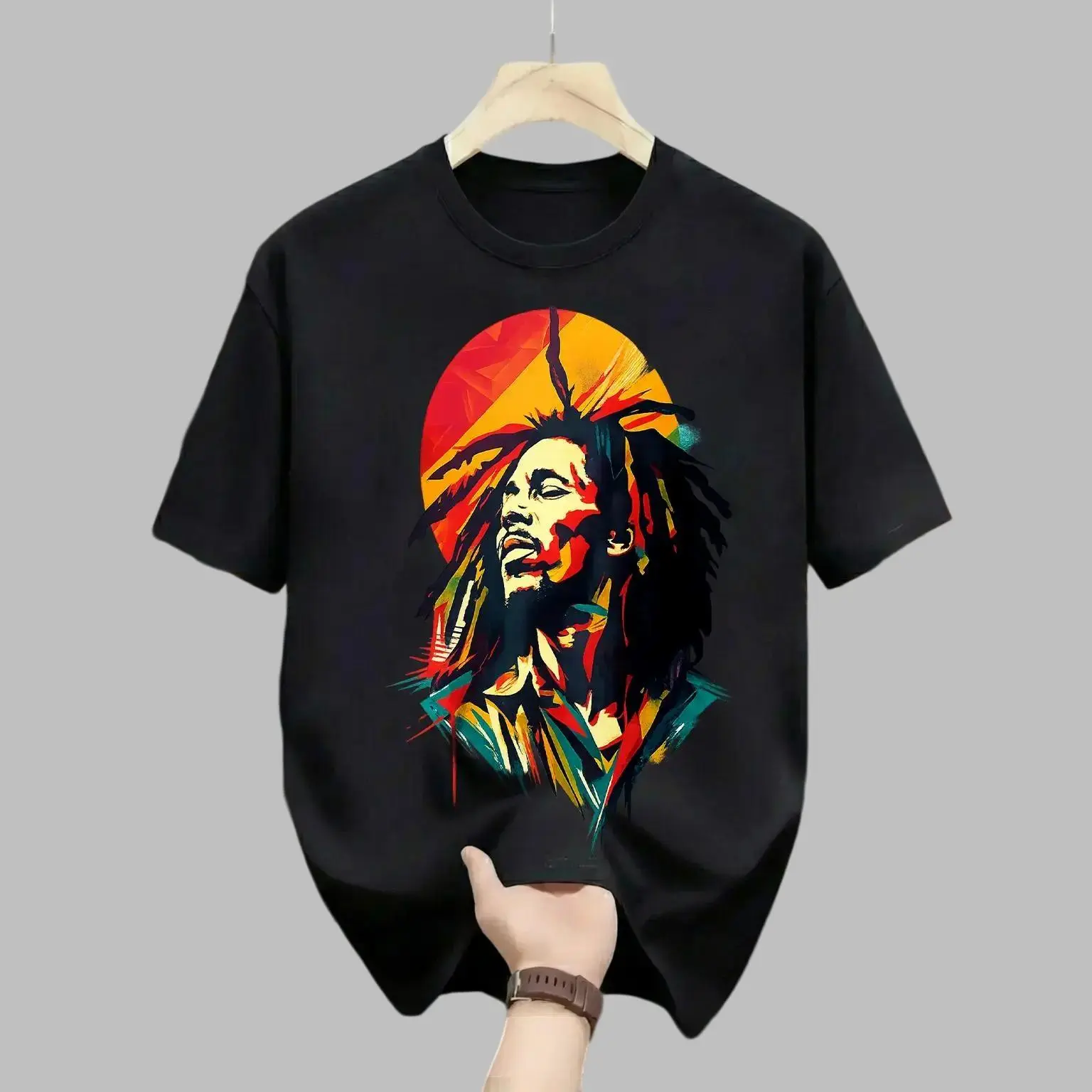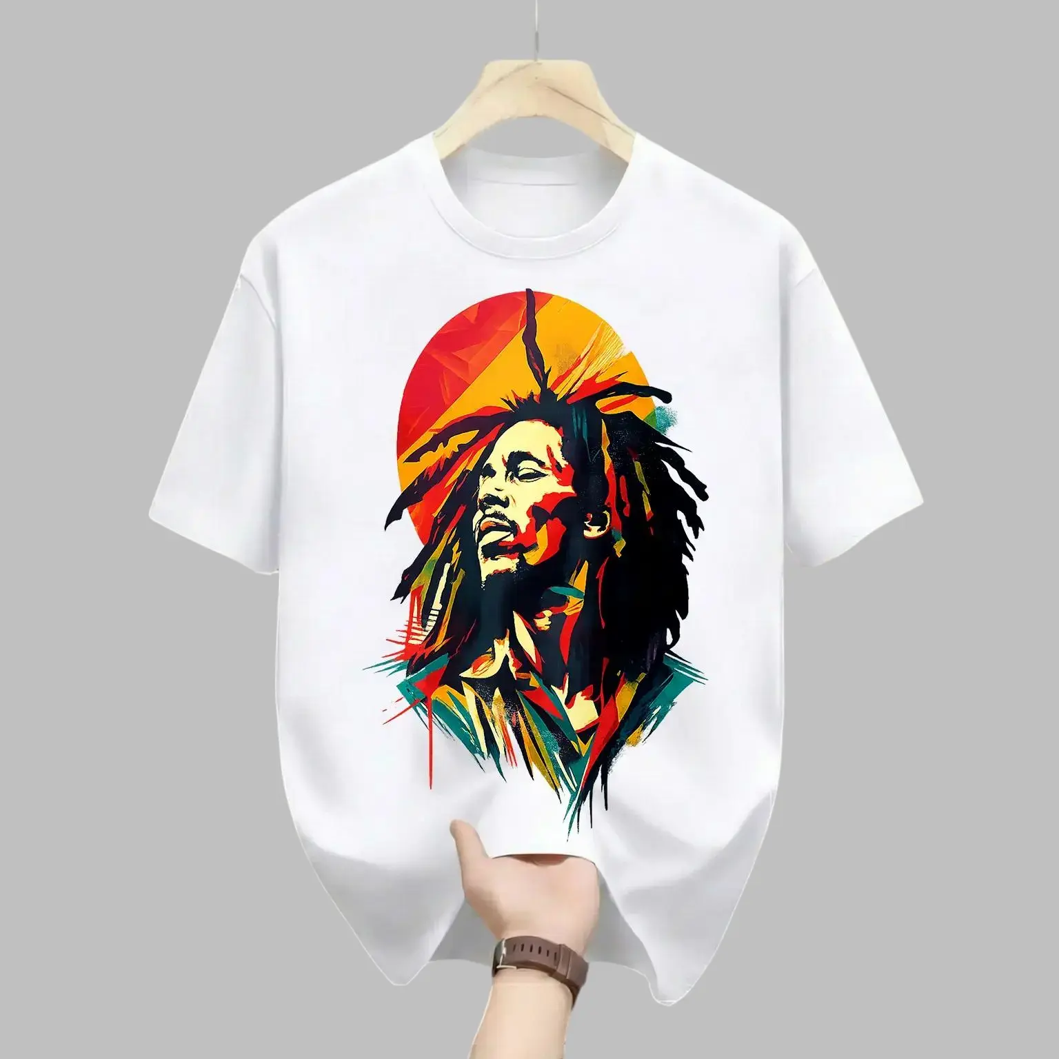 5. Vintage Reggae Music Legend Graphic Tee Colorful Rasta Vibes Casual Shirt 100%Cotton Crewneck Menswear Lightweight Foldable All Seasons