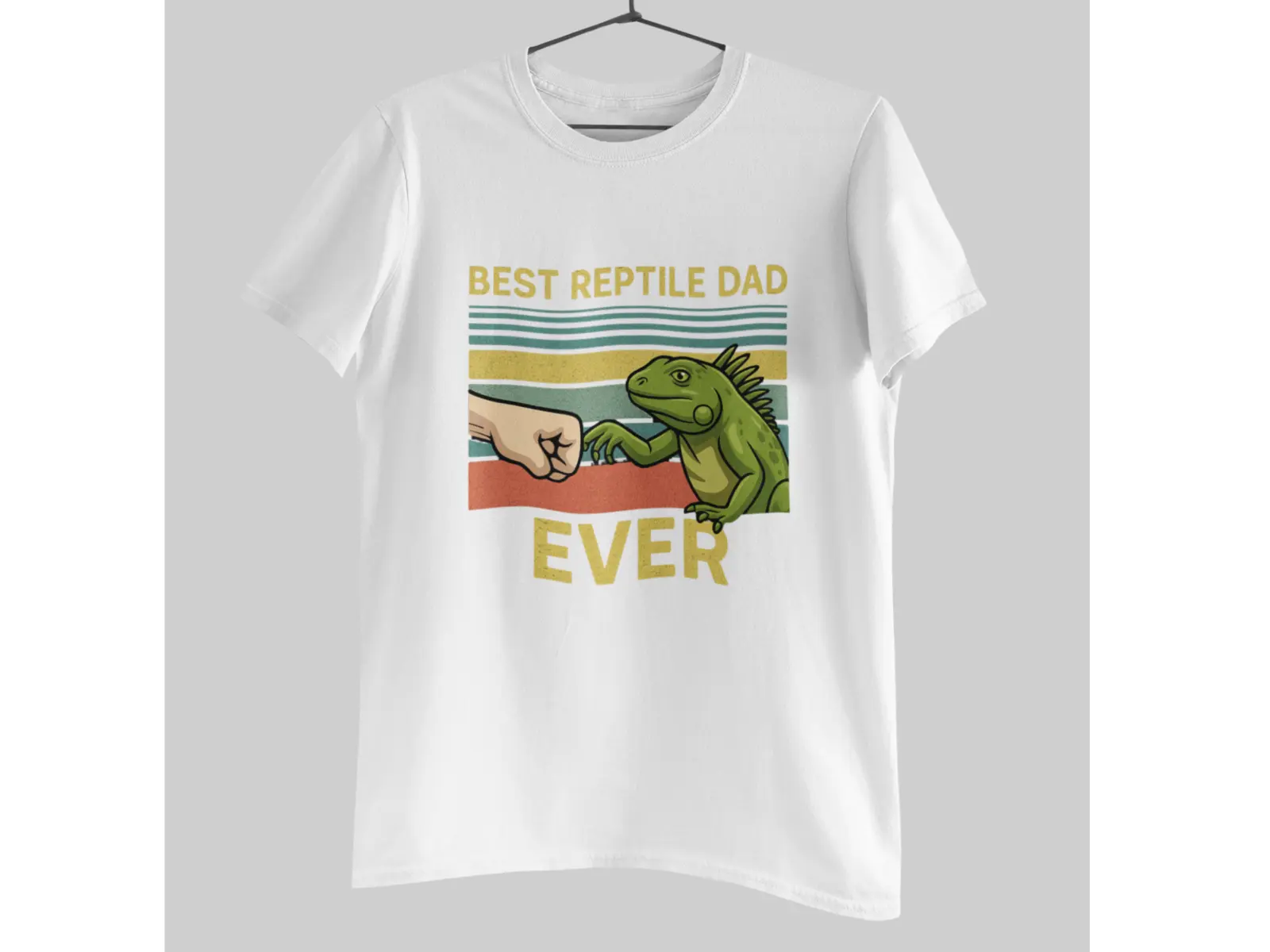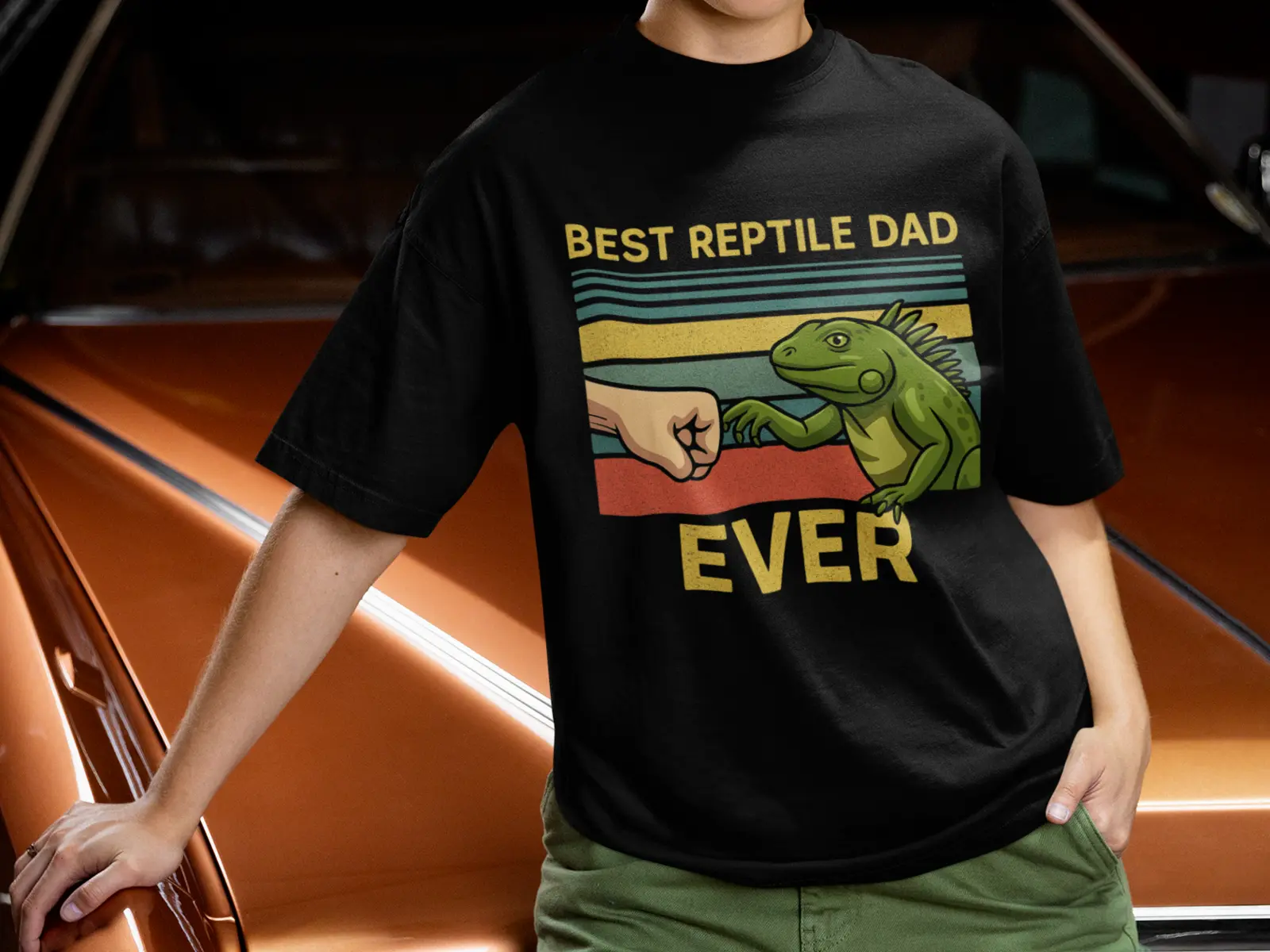 Show your reptile pride with this funBest Reptile Dad EverT-shirt! Featuring a retro-style background and an adorable fist bump scene with an iguana, this shirt is perfect for reptile enthusiasts, exotic pet owners, and proud lizard dads.