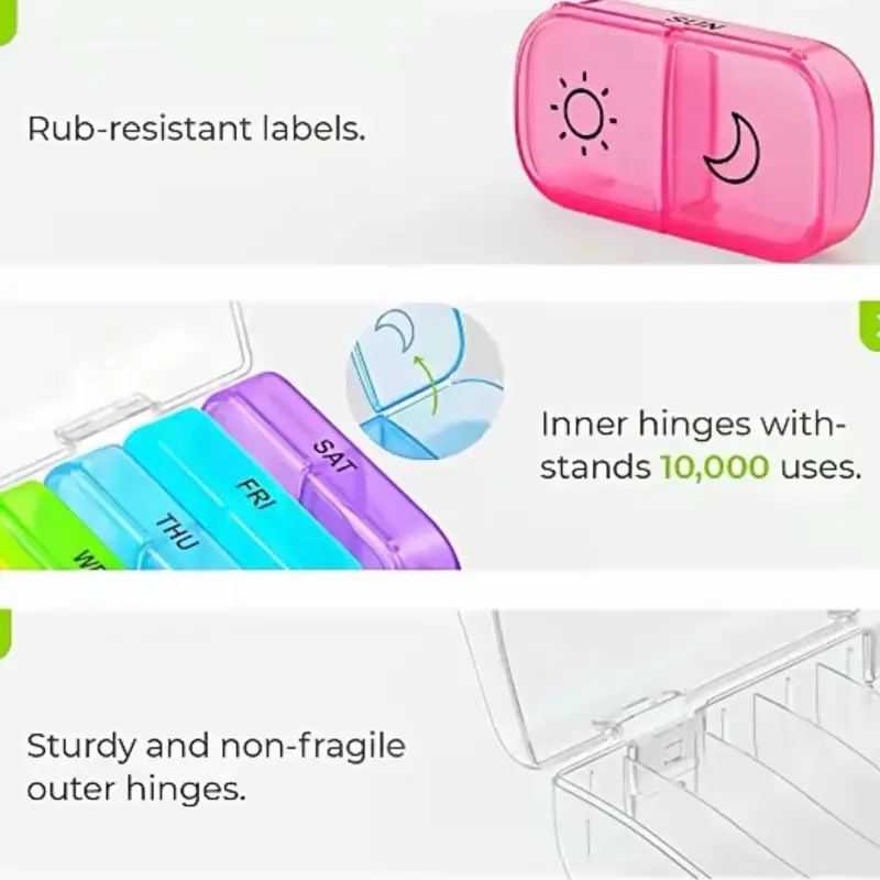 • 7-Day Supply: Holds a week's worth of pills, ensuring you never miss a dose. Stay organized and on track with your health regimen.💊