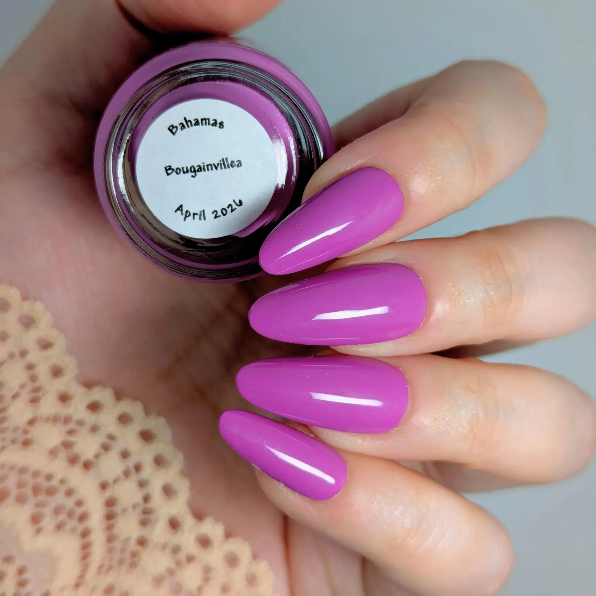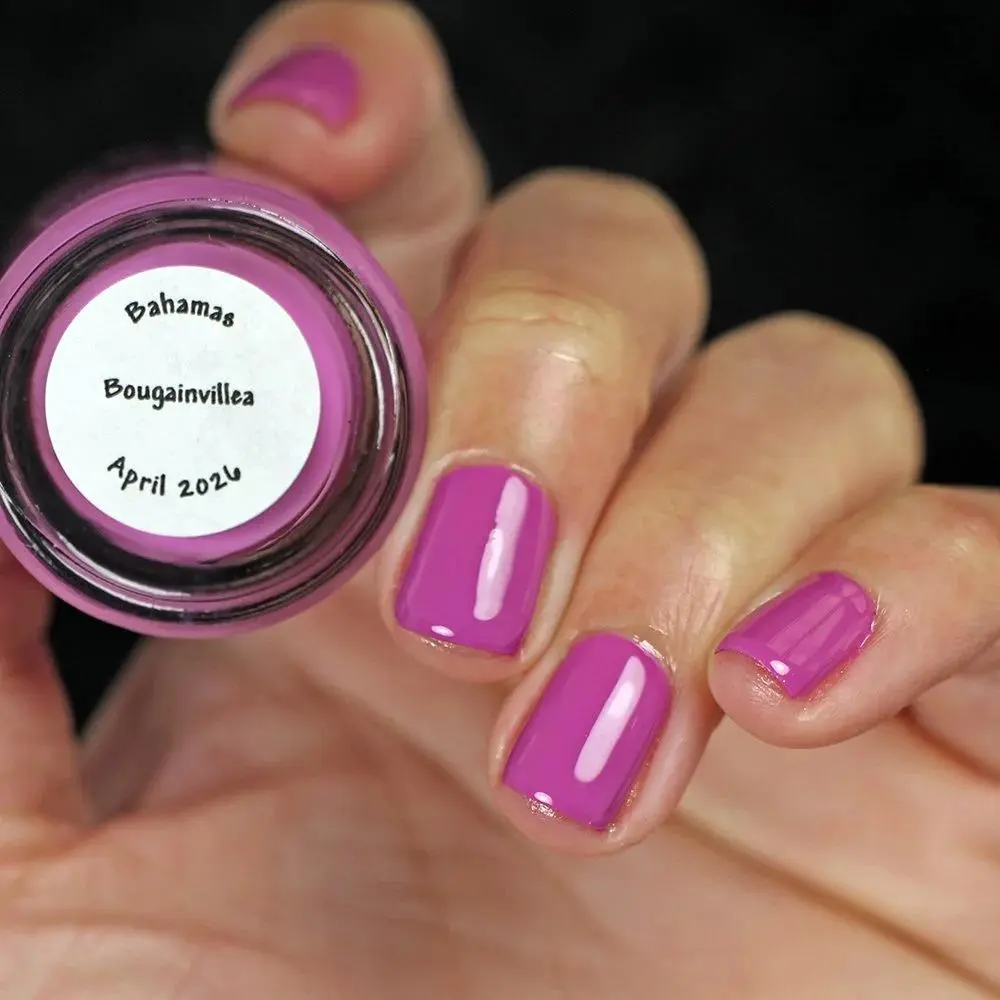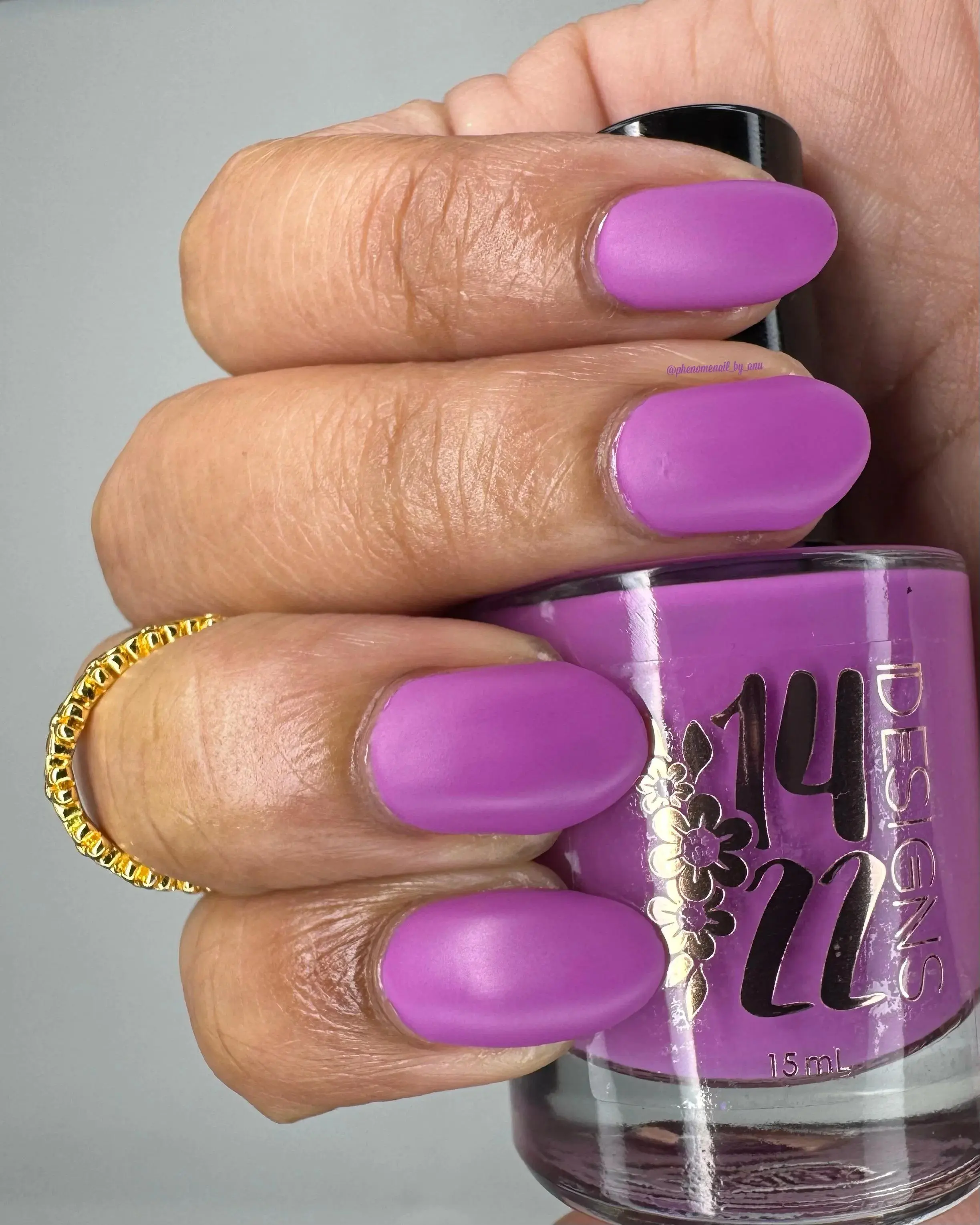 A smooth mid-tone purple with a soft orchid tint and creamy finish. Gives full, even coverage in two thin coats for a salon look. Great for everyday or to dress up neutrals; suits many skin tones and pairs well with muted gold, deep navy, and soft neutrals. Use a base coat for longer wear and a top coat for extra shine.